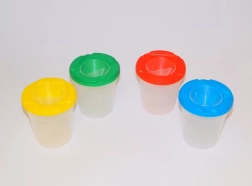 Šis vandens puodelis sukurtas taip, kad užtikrintų maksimalų saugumą naudojant. Viršutinė puodelio dalis neleidžia išsilieti turiniui, jei jis apvirsta, todėl tai puikus pasirinkimas vaikams ir kūrybinei veiklai. Puodelis turi saugų uždarymą su plastikiniu kamšteliu, kurį lengva užsandarinti. Puikiai tinka naudoti mokyklose arba piešiant namuose.
