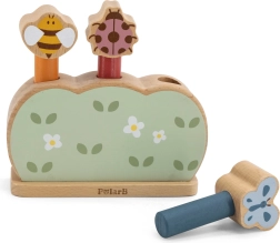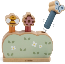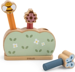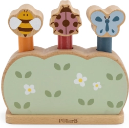 Mielas medinis žaislas patiems mažiausiems su bitės, boružėlės ir drugelio motyvais lavina smulkiąją motoriką, akių–rankų koordinaciją ir veiksmo–reakcijos principą. Tiesiog paspauskite galvytę ir gyvūnėliai iš spyruoklinio mechanizmo džiugiai iššoks. Kokybiška mediena, netoksiški dažai ir patrauklios ryškios spalvos daro šį žaislą idealia dovana.