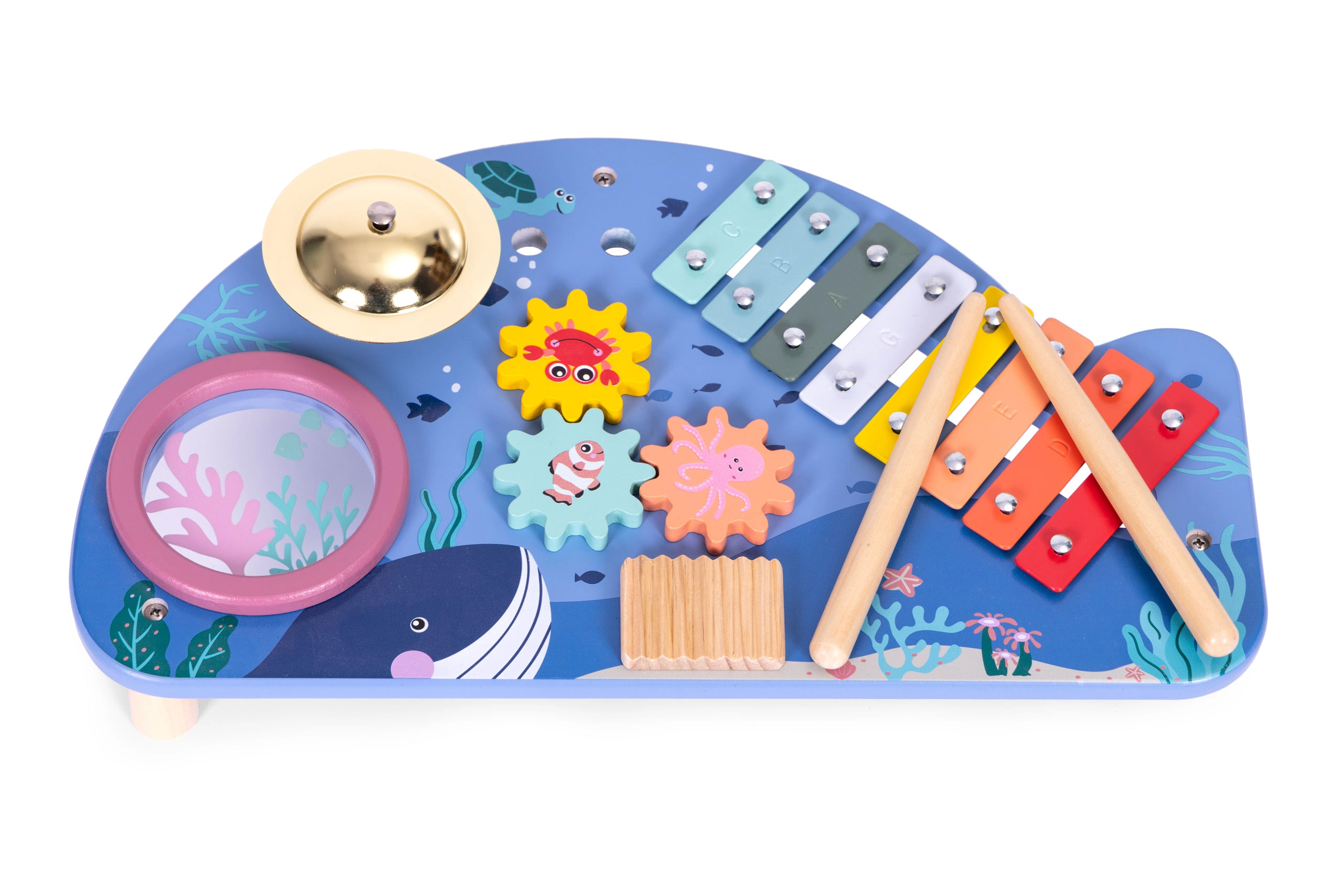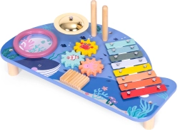 Pristatome unikalų vaikišką muzikos staliuką, kuris padės ugdyti jūsų vaiko muzikinius gebėjimus. Vandenyno motyvai ir saugi, be aštrių kampų konstrukcija užtikrina, kad jis tinka vaikams nuo 18 mėnesių.