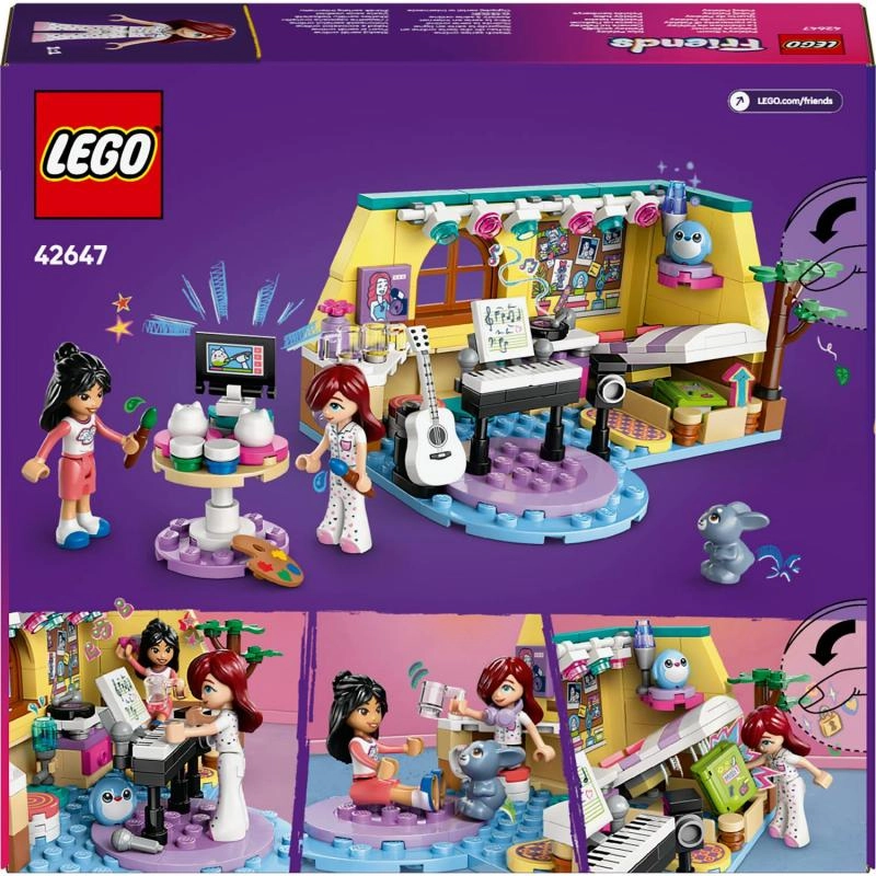 Atraskite kūrybos pasaulį su rinkiniu LEGO Friends Paisley kambarys (42647), skirtu vaikams nuo 6 metų. Dvi minilėlės Paisley ir Liann, mielas triušiukas Melody ir gausybė muzikos bei meno priedų suteiks valandų valandas išradingo žaidimo. Rinkinyje yra gitara, mikrofonai, garsiakalbiai, dailės reikmenys ir net slapta slėptuvė lovoje dienoraščiui. Puiki dovana mažiesiems muzikos, piešimo ir draugystės istorijų gerbėjams.