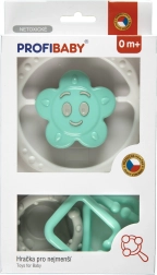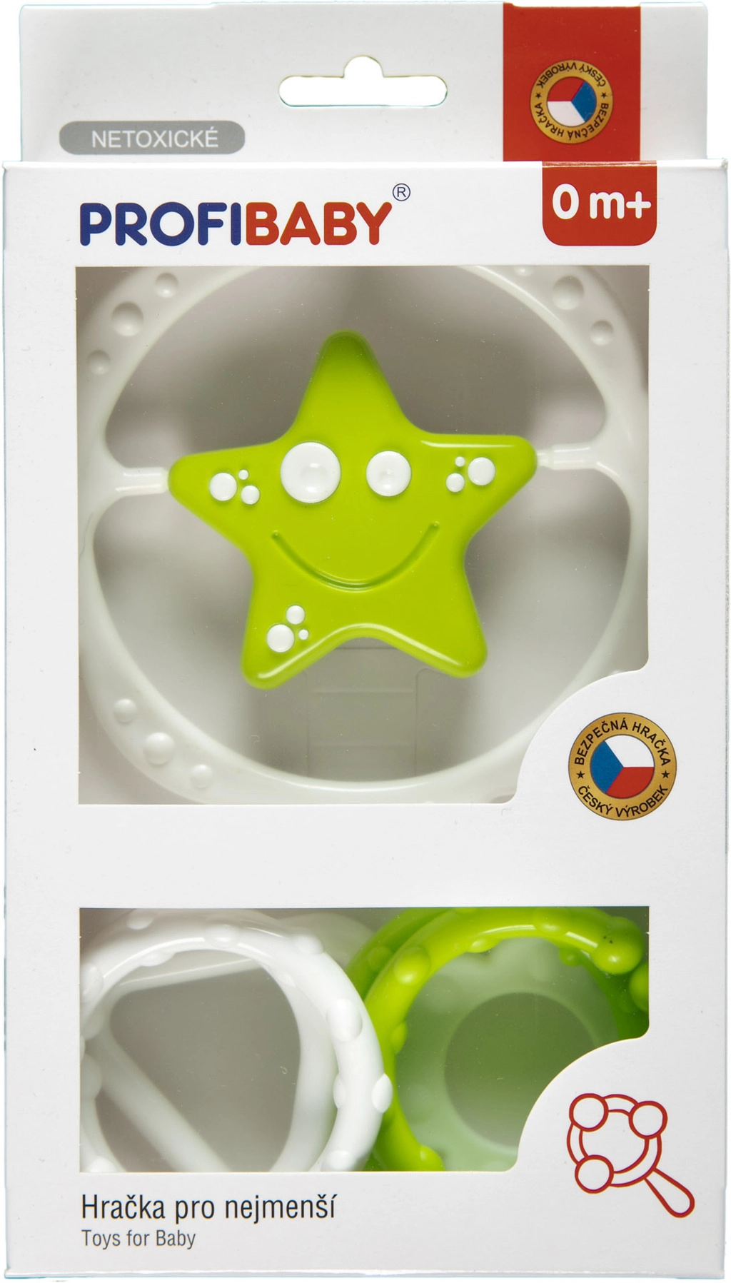 Praktiškas rinkinys patiems mažiausiems: barškutis–grandinėlė vežimėliui ar lovytei ir atskiras barškutis žvaigždutės arba gėlytės formos. Skatina klausos, regos ir lytėjimo raidą, natūraliai lavina griebimo refleksą ir sukurtas su saugumu mintyje – be aštrių briaunų ir be atsiskiriančių smulkių detalių. Galima rinktis įvairias spalvas ir 2 motyvus.