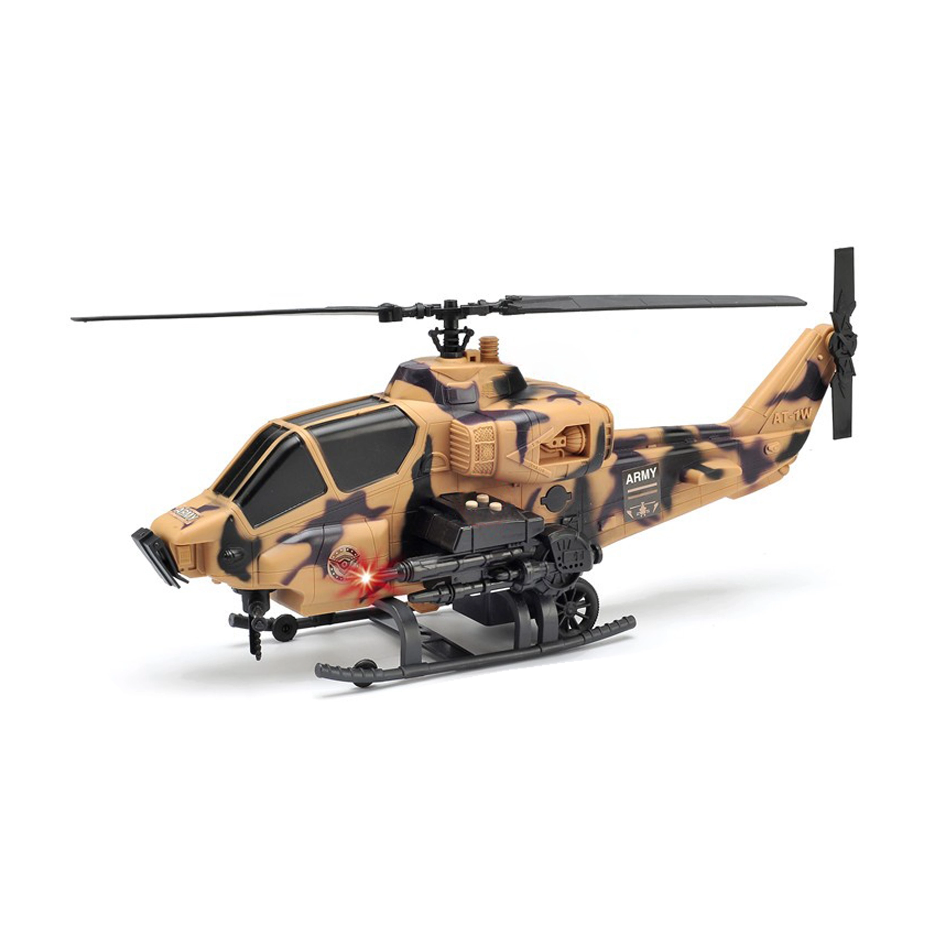 Didelis karinis sraigtasparnis (42 cm) su šviesos ir garso efektais, įjungiamais mygtukais. LR44 baterijos yra pakuotėje, tad galite žaisti iš karto.