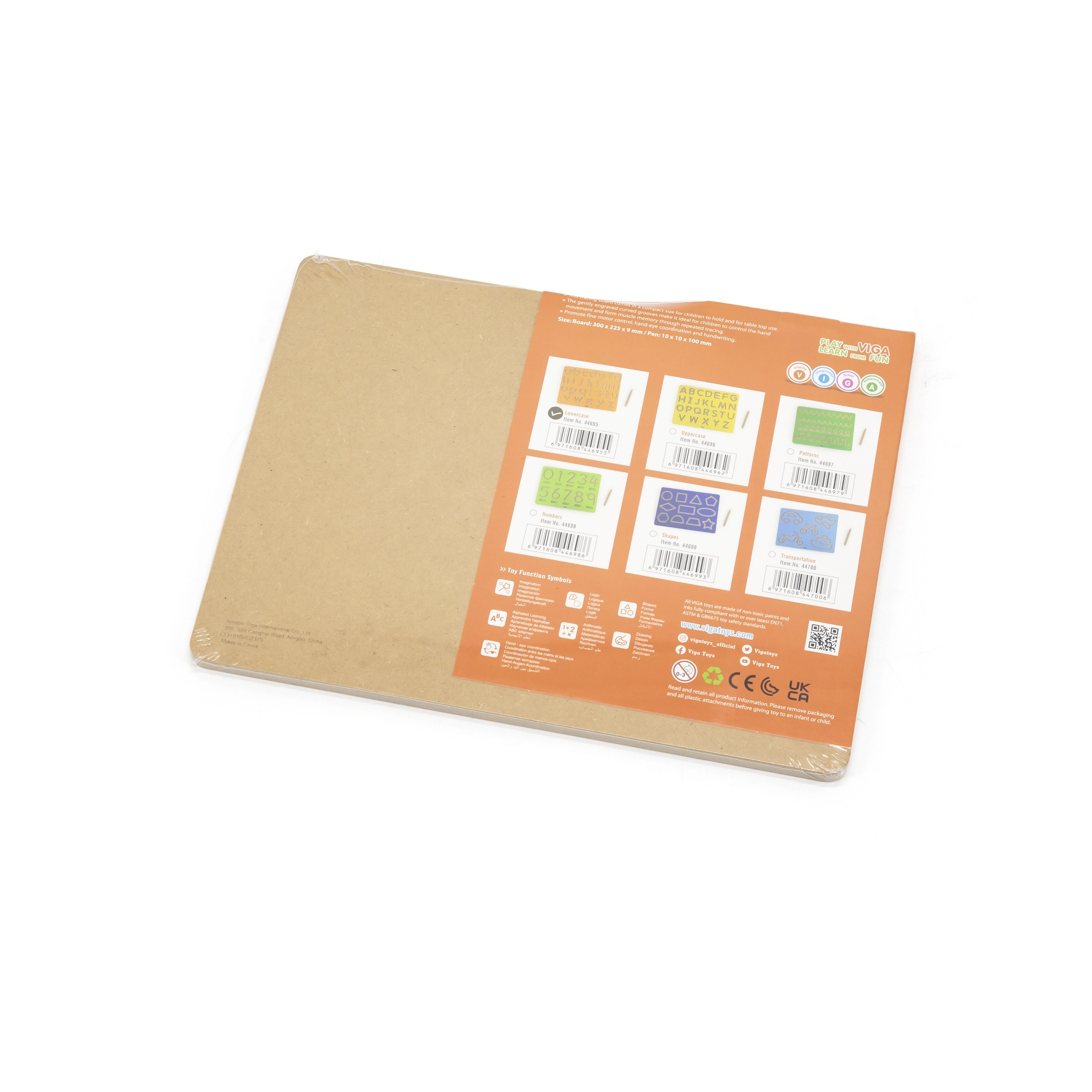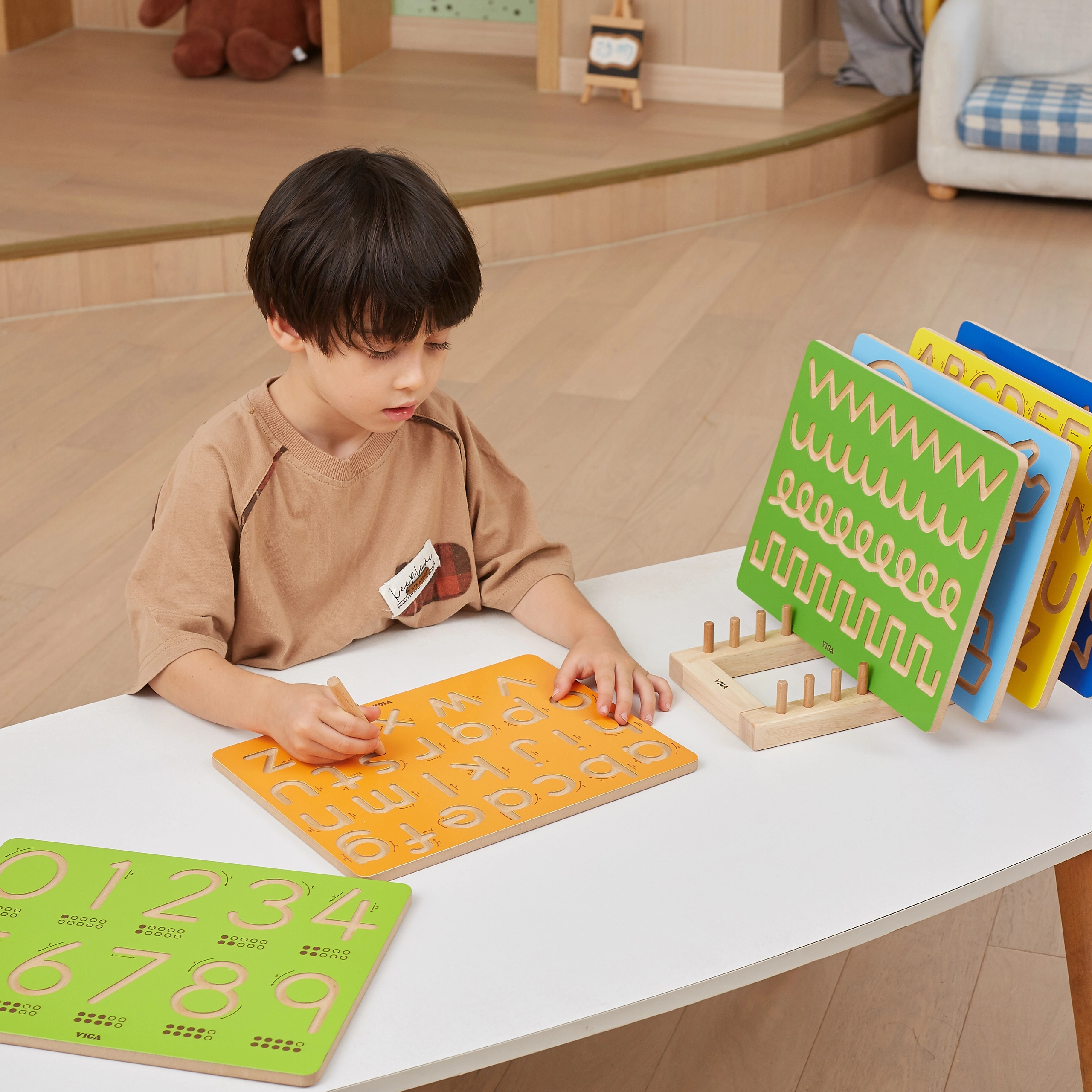Lentoje yra smulkūs graviruoti grioveliai su pažymėtomis rodyklėmis, kurie padeda vaikams treniruoti taisyklingą rašymo techniką.