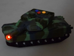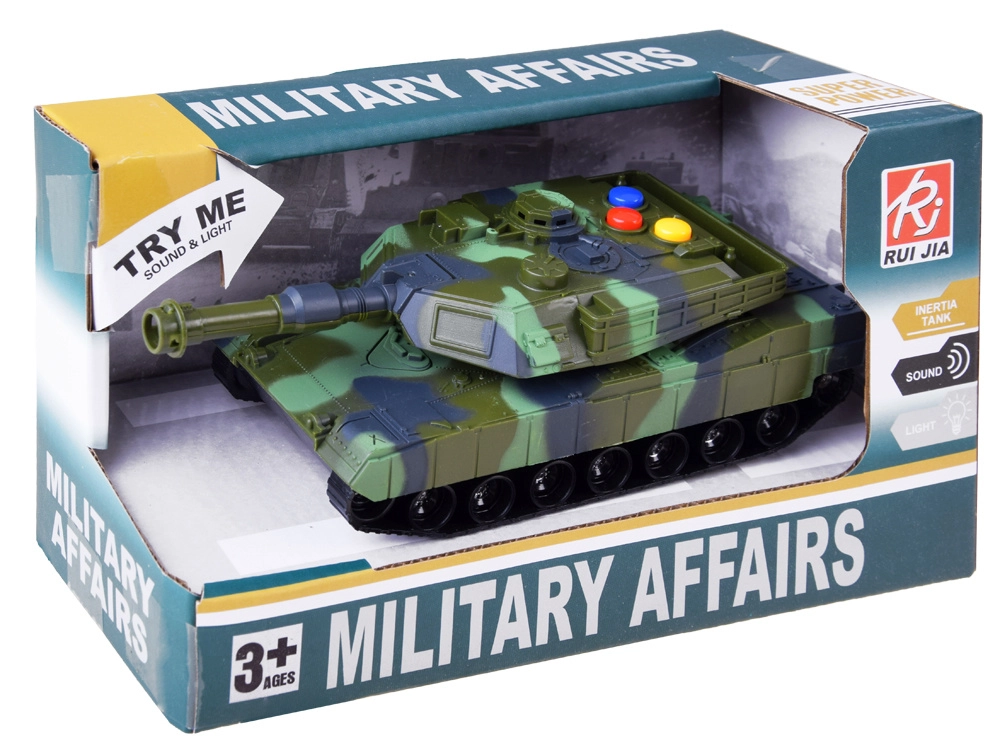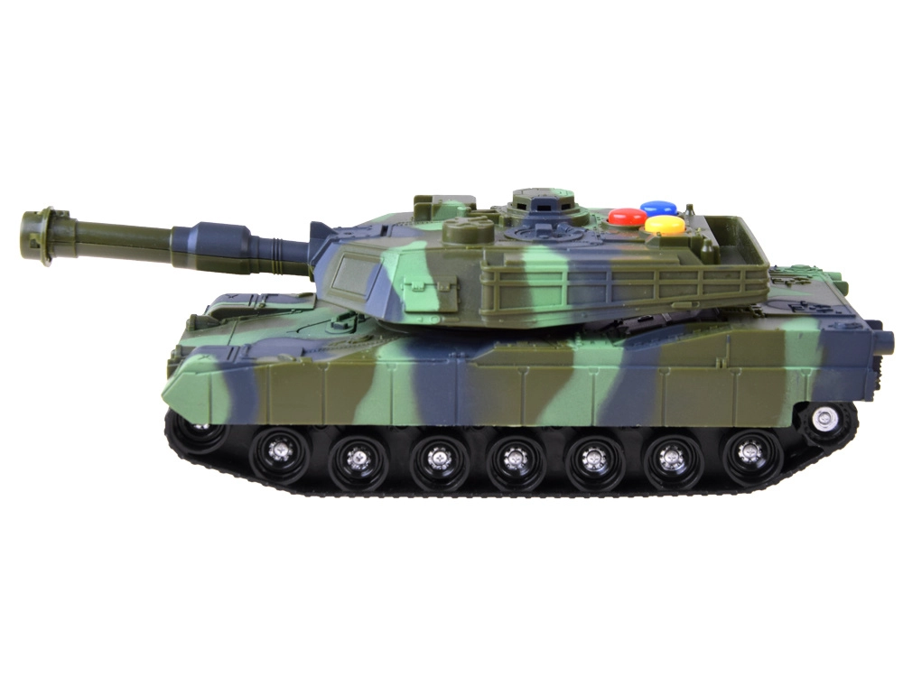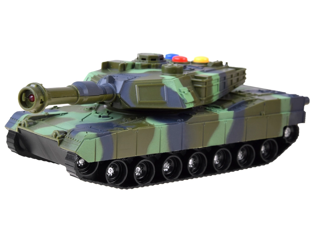Karinis tankas pagamintas iš kokybiško plastiko, kuris užtikrina realistišką išvaizdą ir patvarumą. Tankas turi tris spalvotus mygtukus, kurie atkuria realistiškus garsus, tokius kaip važiavimas, paruošimas ir šūvis ar sirena. Kiekvieną kartą paspaudus mygtuką pajusite autentišką mūšio atmosferą.