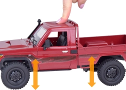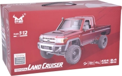 Licencijuotas modelis TOYOTA LAND CRUISER 4x4 masteliu 1:12 siūlo realistinį atlikimą, visų varančiųjų ratų pavarą, jautrų 2,4 GHz valdymą ir veikiantį pakabos amortizavimą važiavimui bekelėje. Tvirtas korpusas, guminės bekelės padangos, atidaromas variklio dangtis ir aukštos kokybės medžiagos užtikrina ilgą tarnavimo laiką ir puikų pramogą vaikams ir suaugusiesiems.