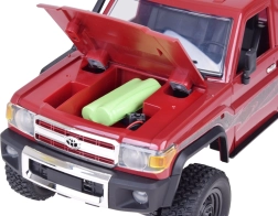 Išsami TOYOTA LAND CRUISER kėbulo imitacija, atidaromas variklio dangtis ir autentiški priedai išsiskiria tiek lentynoje, tiek važiuojant bekelėje.