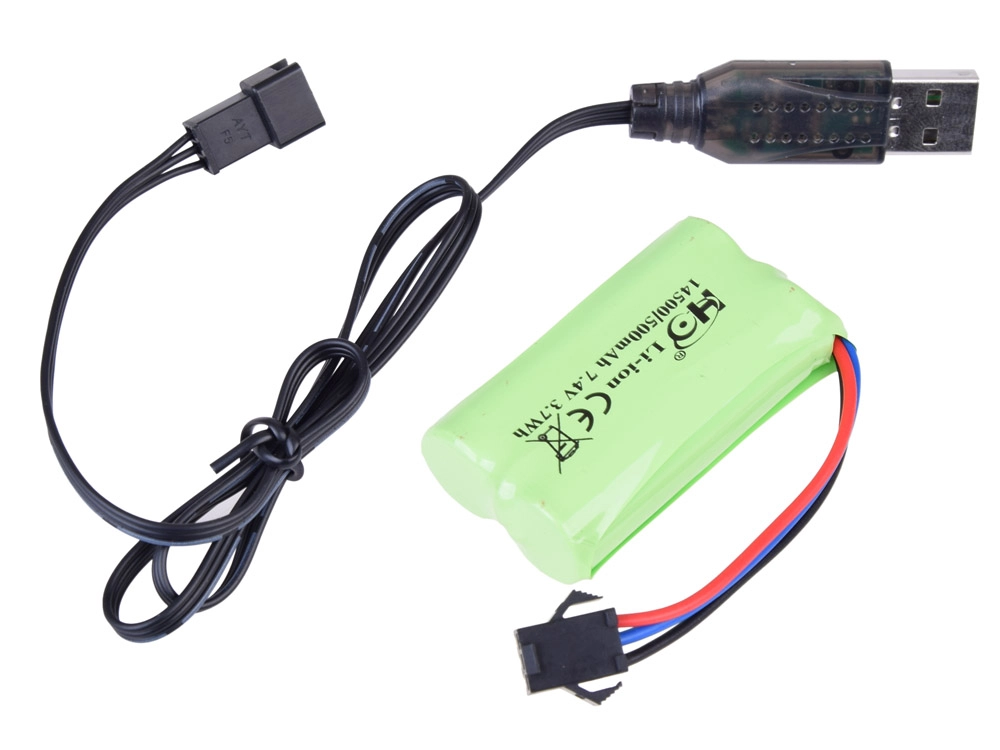 - 1× akumuliatorius 7,4 V 500 mAh (yra komplekte)