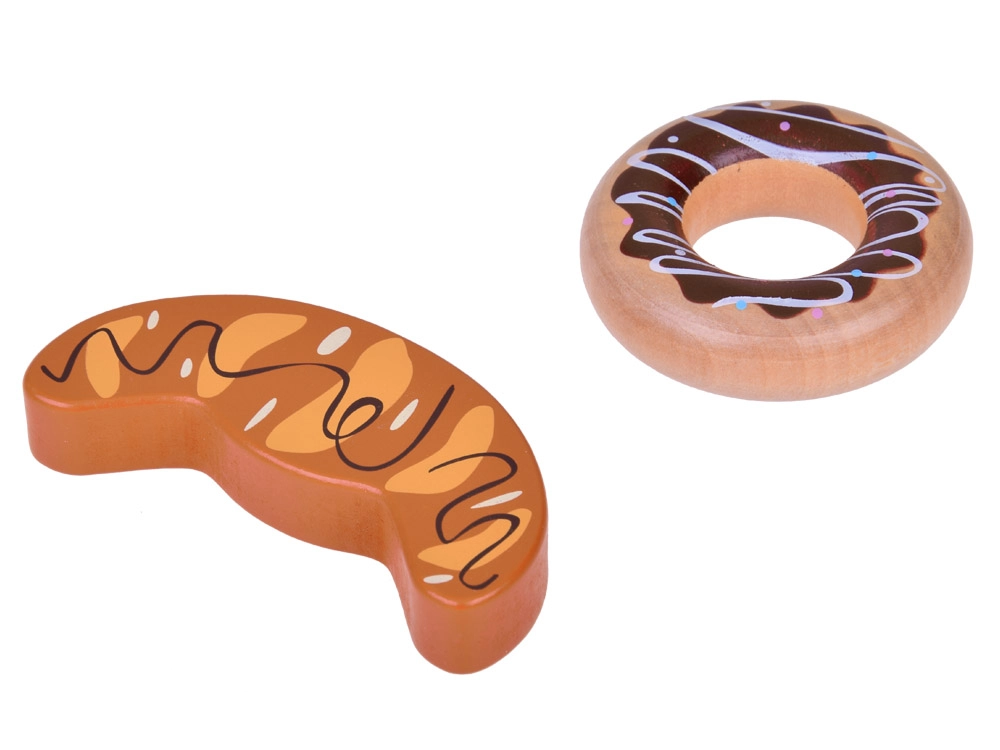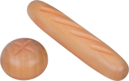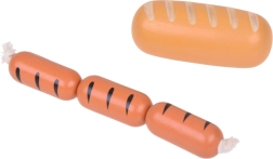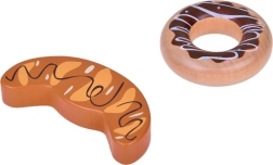 Bagetė, bandelė, skrebučiai, kruasanas, spurgos, dešrelės, kiaušinis ir pienas – tikroviškos formos ir spalvos kviečia žaisti virtuvę ar parduotuvę.