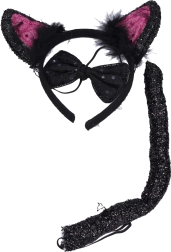 Rinkinys „juoda katė“ puikiai tinka tiek karnavalams, tiek gimtadieniams ar teminiams vakarėliams. Dėl paprasto dizaino jis tinka vaikams nuo 6 metų. Kiekvienas rinkinio elementas sukurtas atsižvelgiant į patogumą ir saugumą – lankstus lankelis prisitaiko prie skirtingų galvos dydžių, o varlytė ir uodega užtikrina patogų dėvėjimą ilgesnį laiką. Juoda spalva suteikia kostiumui laiko nepaisantį ir universalų įvaizdį, kurį lengvai suderinsite su įvairiais aprangos stiliais.