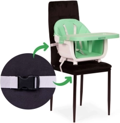Sėdynę lengvai nuimsite ir dirželiais pritvirtinsite prie įprastos kėdės. Puikiai tinka namuose, svečiuose ar atostogose – vaikas visada turės savo saugią vietą prie stalo.