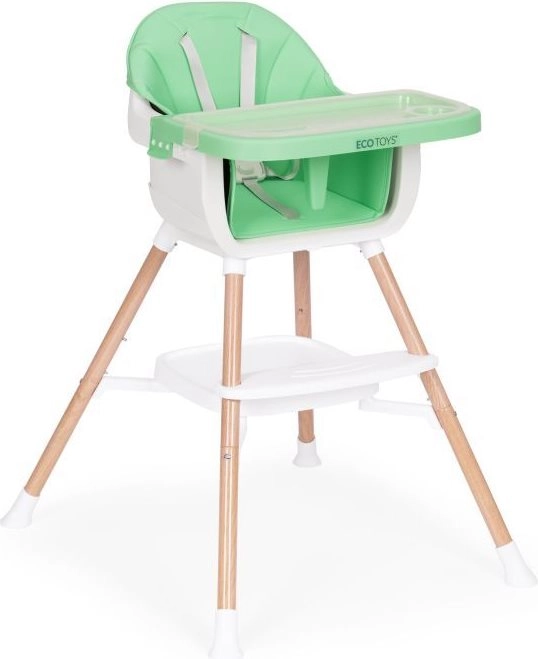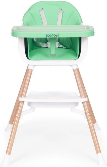 Praktiška vaikiška 2‑in‑1 maitinimo kėdutė iš ECOTOYS sujungia aukštą kėdutę ir atskirą paaukštintą sėdynę ant įprastos kėdės. Ji turi stabilią konstrukciją su metalinėmis kojomis, lengvai valomą dvigubą padėklą, tinkamą indaplovei, 5 taškų saugos diržą, neslystančius antgalius ir pakojį. Idealu vaikams nuo 6 iki 36 mėn., maksimali apkrova 20 kg.