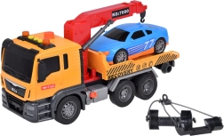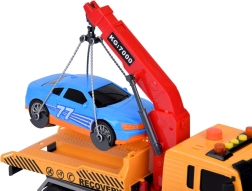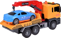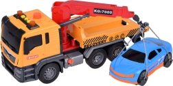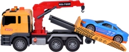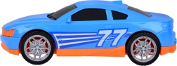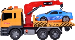 Rinkinyje taip pat yra mėlynas sportinis automobilis, kuris idealiai telpa ant vilkiko. Visa žaislinė transporto priemonė pavaizduota realistiškomis spalvomis – geltona, pilka, raudona ir mėlyna.