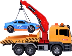 Didelis žaislinis vilkikas su šviesos ir garso efektais bei mėlynu lenktyniniu automobiliu – puikus pasirinkimas mažiesiems automobilių gerbėjams! Šis rinkinys siūlo realistiškas detales ir funkcijas, kurių dėka vaikai taps kelio herojais.