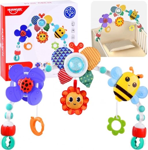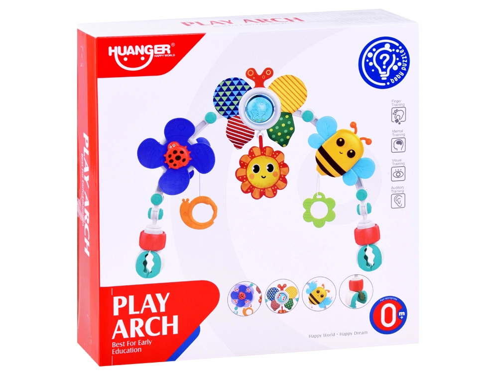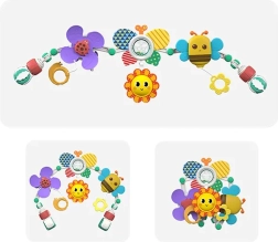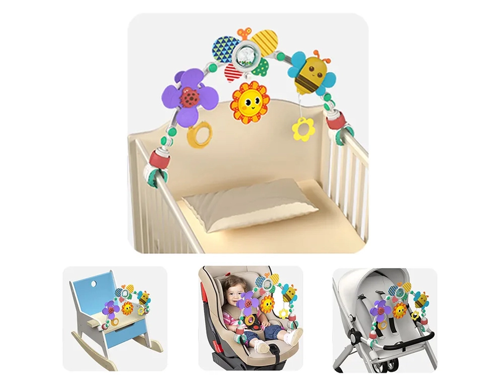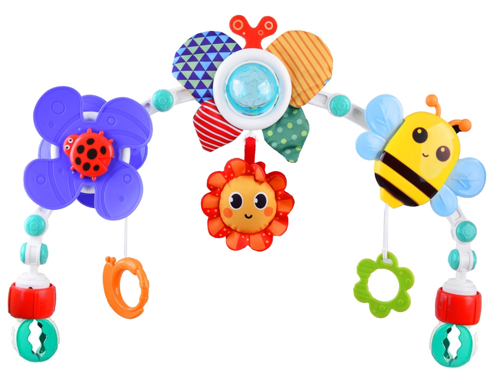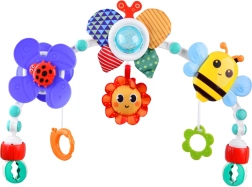 Šis spalvingas žaidimų lankas sukurtas taip, kad būtų lengva pritvirtinti prie vežimėlio, lovytės ar automobilinės kėdutės. Dėl reguliuojamo kampo jį lengvai pritaikysite kūdikio poreikiams ir padėčiai. Pakabinami elementai su barškučiais ir įvairiomis tekstūromis skatina tyrinėti, suimti ir tiesti rankytes.
