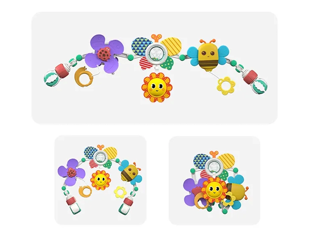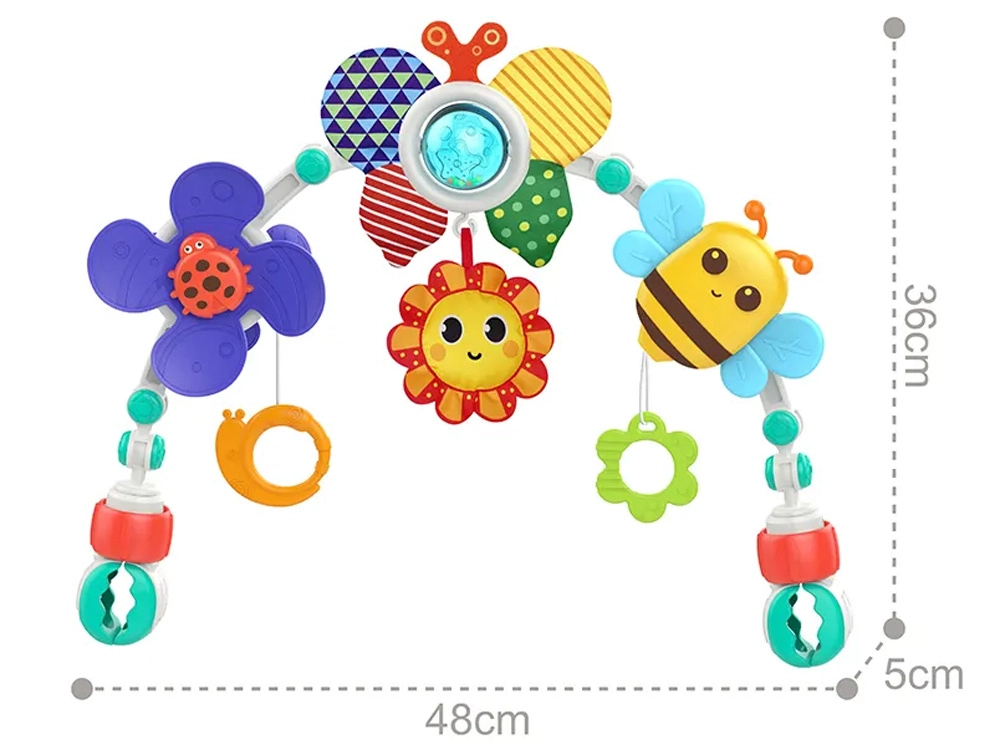 Universalus kabinamas lankas vežimėliui, lovytei ir automobilinei kėdutei suteikia kūdikiui daug pramogų ir stimulų. Dėl lengvo montavimo ir reguliuojamo kampo patogu naudoti kasdien. Pakabinami žaislai skatina motorikos raidą, akių ir rankų koordinaciją bei jutiminę stimulaciją, o ryškios spalvos ir formos ugdo sutelktumą ir smalsumą.