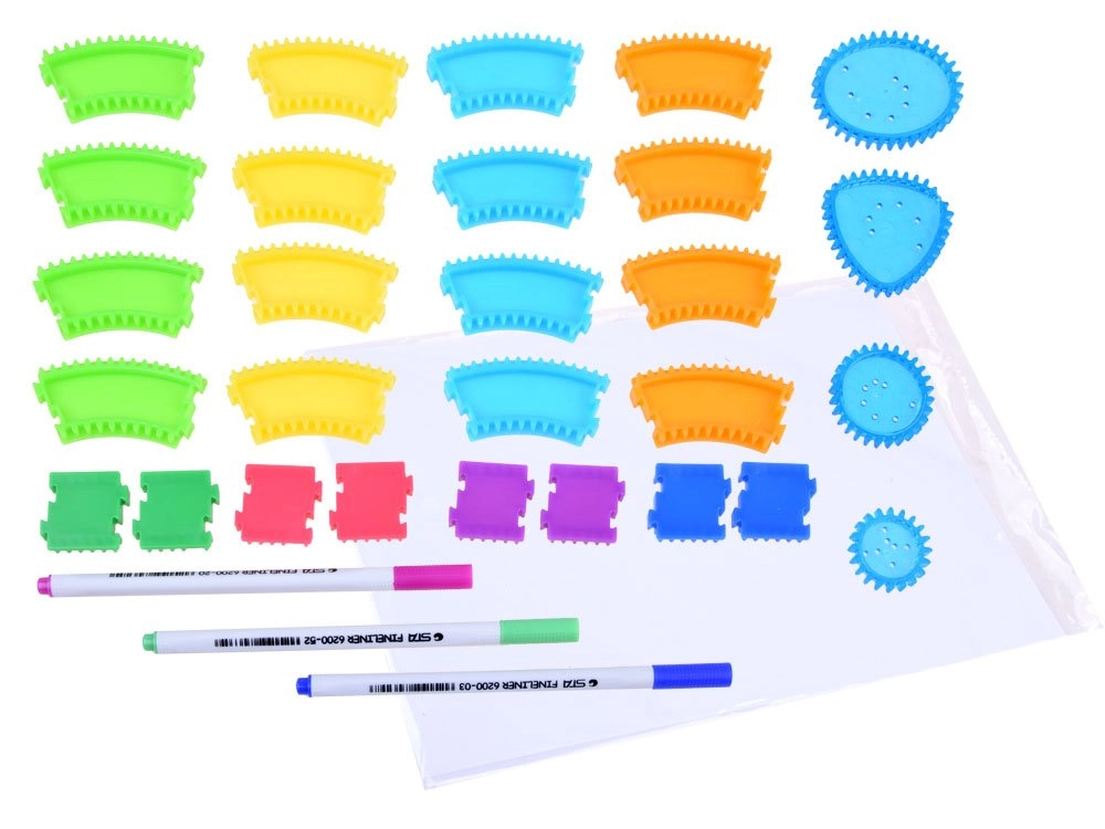 Rinkinys idealus lavinti kantrybę, rankos tikslumą ir pagrindinius geometrijos principus. Dėl paprasto rašiklio vedimo dantytais ratais principo piešti lengva ir įtrauku – tinka pradedantiesiems ir mažiesiems menininkams.