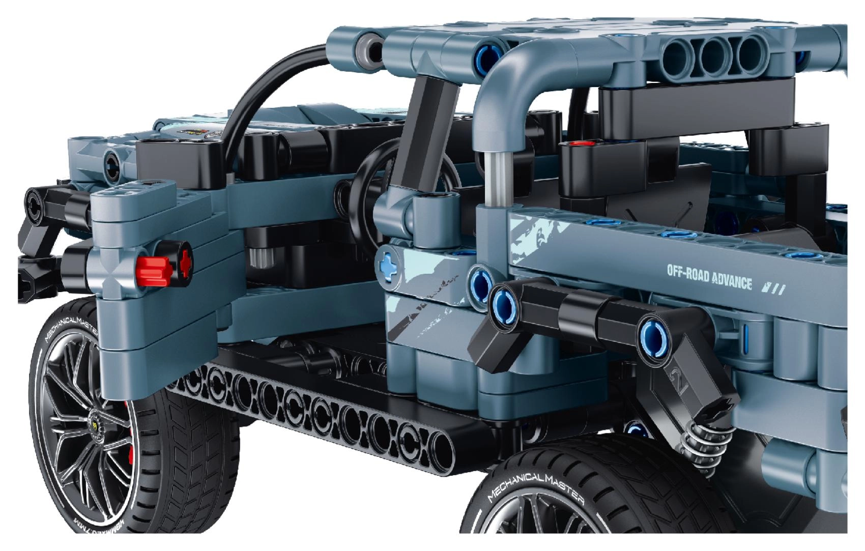 Dėl 463 konstrukcinių detalių modelis yra detalus ir stabilus – nuo plačių ratų ir ištobulintos važiuoklės iki realistinių kėbulo elementų. Rinkinys suderinamas su populiariais panašaus tipo konstruktoriais, todėl galite plėsti ir tobulinti savo projektus.