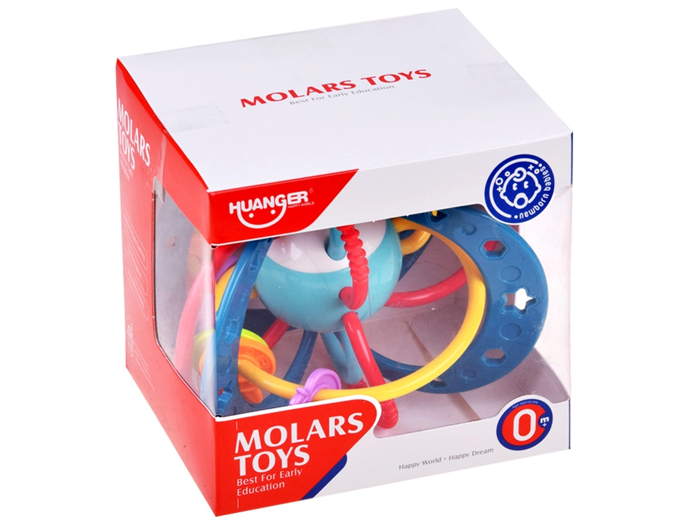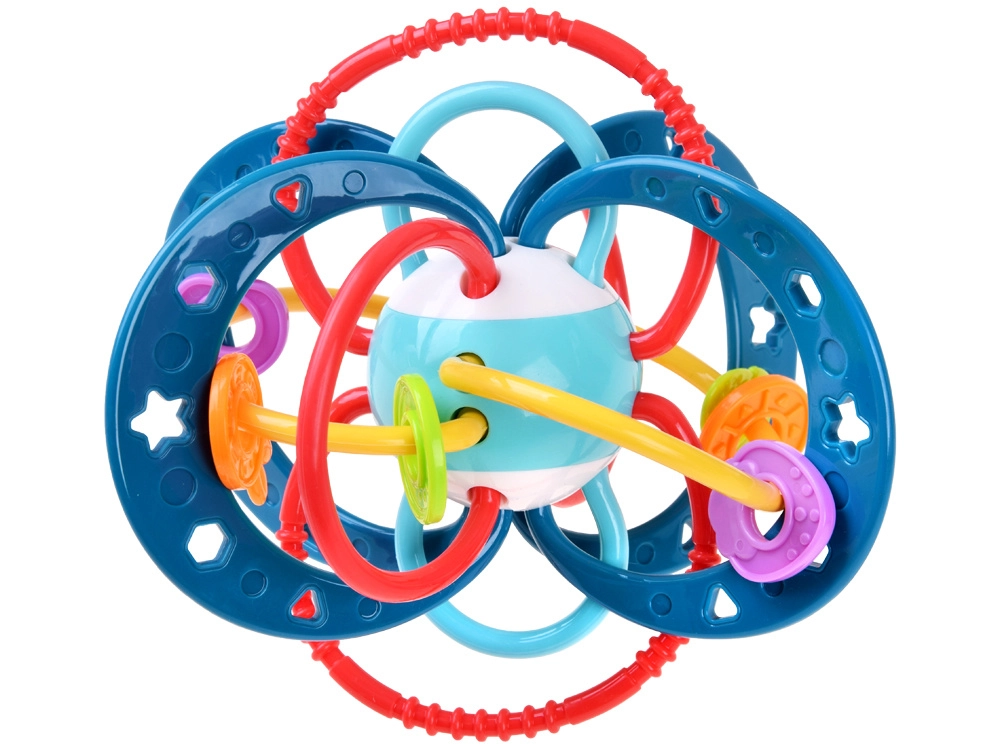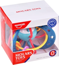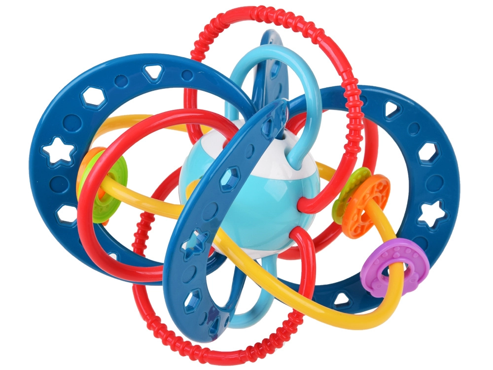Spalvingas sensorinis kramtukas kamuoliukas su barškučiu kūdikiams