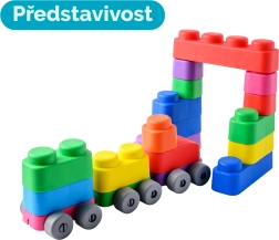 Atraskite begalines pramogų galimybes su šiuo minkštu Far Far Land konstruktoriu, kuriame yra 25 spalvotos kaladėlės ir 16 ratukų, visa tai pagaminta iš saugios medžiagos.