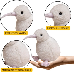 Mielas 21 cm aukščio plišinis kivis su realistišku dizainu ir minkšta, malonia medžiaga. Baltos spalvos, CE ir EN71 sertifikatai – saugus vaikams nuo 3 metų. Puikiai tinka kaip mylimas žaislas ir dekoracija vaikų kambaryje.