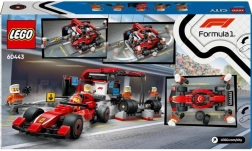 Rinkinyje yra raudonas F1 „Ferrari“ automobilis, vairuotojo minifigūrėlė ir keturi komandos nariai autentiškiems lenktynių scenarijams bei komandiniam darbui.