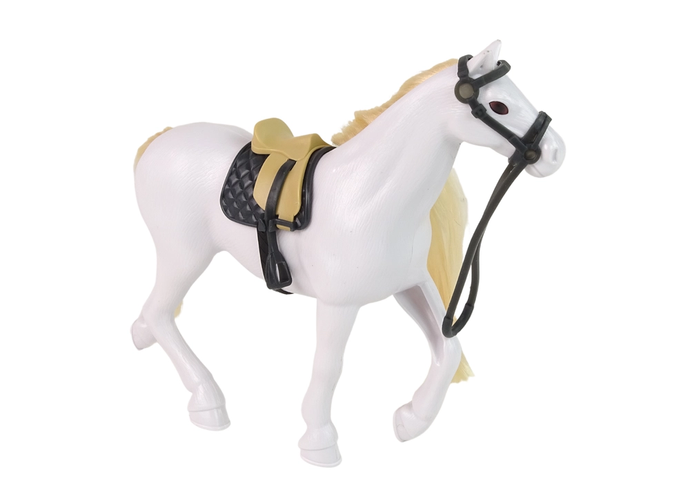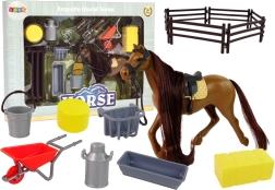Šis detaliai sukurtas žirgo rinkinys siūlo viską, ko vaikams reikia žaidžiant tvartą ir prižiūrint gyvūnus. Žirgas turi gražią karčieną, tinkančią šukuoti ir pinti kaseles, taip pat pridedami balnas ir kamanos. Komplekte yra aptvaras, šienas ir praktiški įrankiai kasdienei priežiūrai.