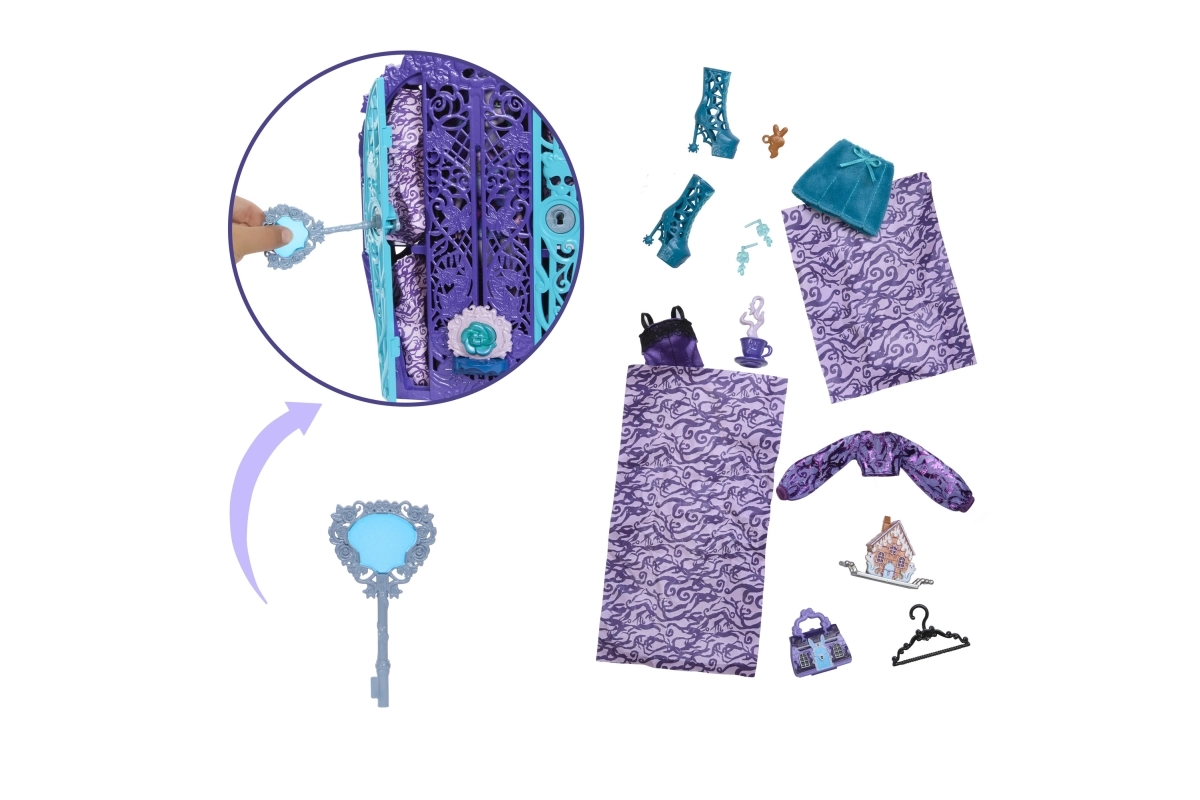 Sudėkite lėlę ir jos priedus į nuostabiai suprojektuotą šiurpią spintą.