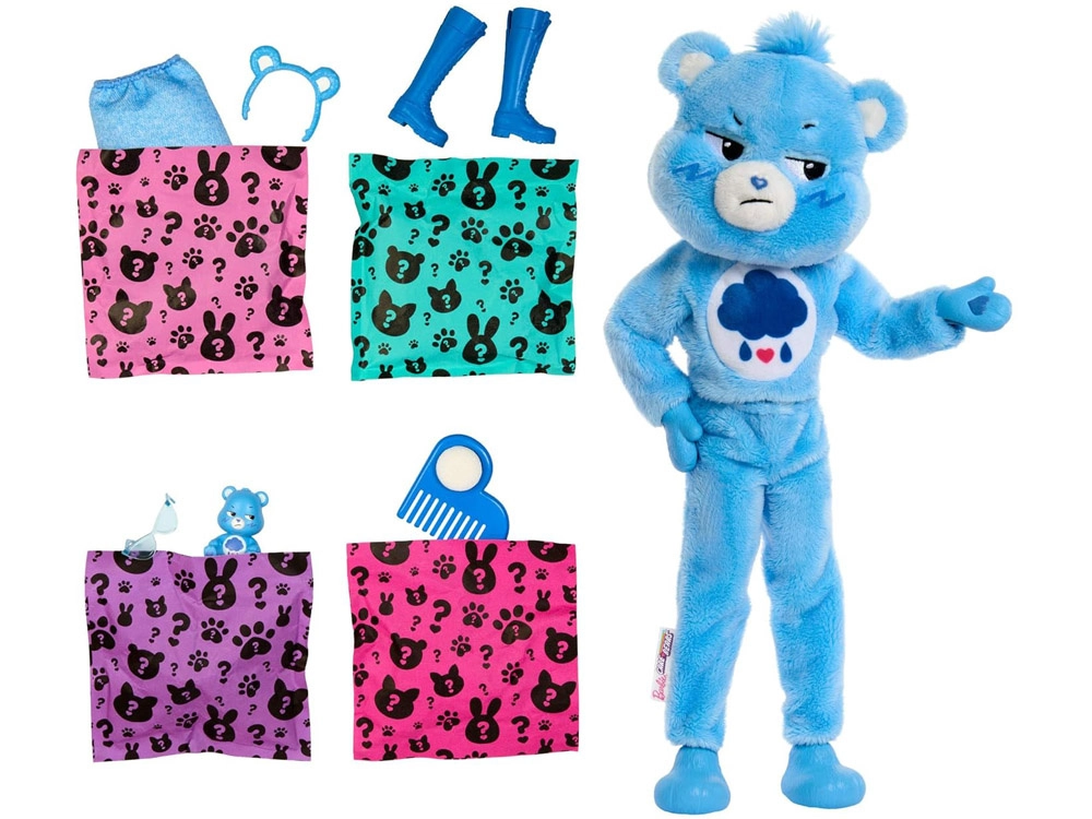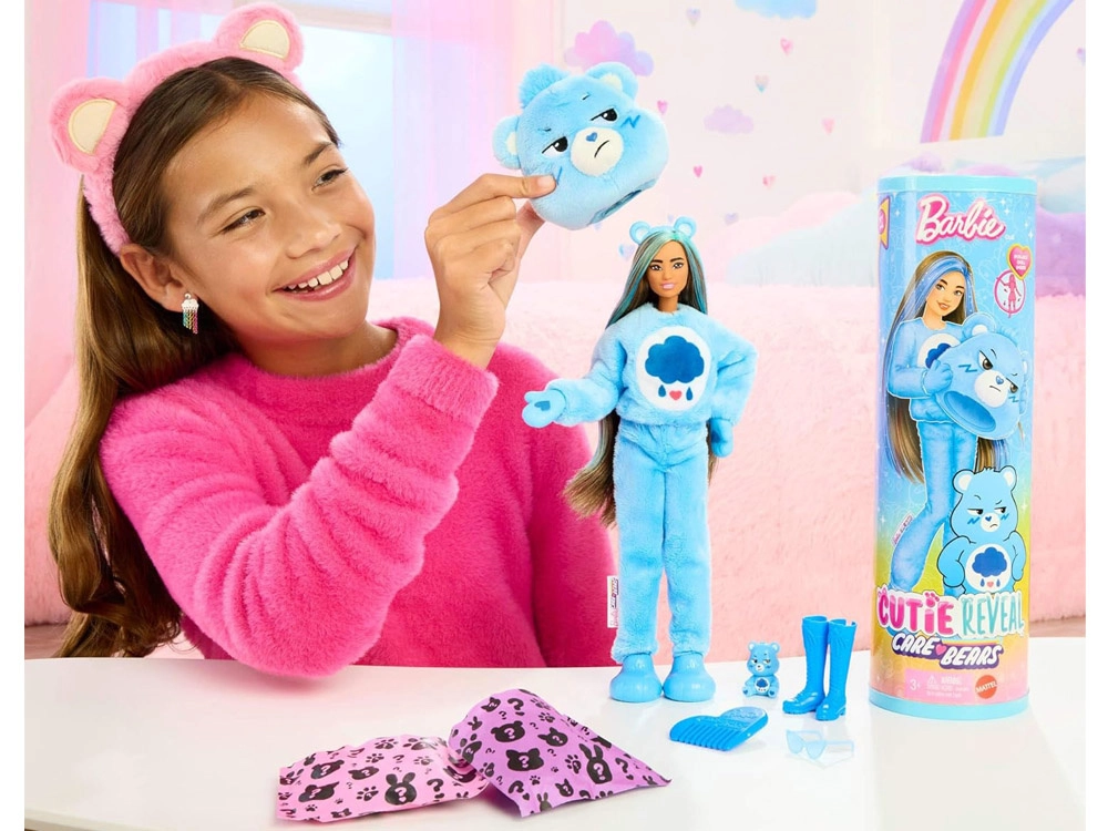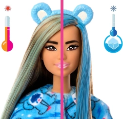 Atraškite Barbie Cutie Reveal serijos, įkvėptos RŪPESČIO MEŠKUČIAIS, magiją. Ši lėlė paslėpta minkštame pūkuotame meškos kostiume mėlynos spalvos ir siūlo 10 staigmenų, lankstomus sąnarius pozavimui bei magišką plaukų spalvos keitimą naudojant šiltą ir šaltą vandenį. Idealu kūrybiniam žaidimui, persirengimui ir istorijų pasakojimui.