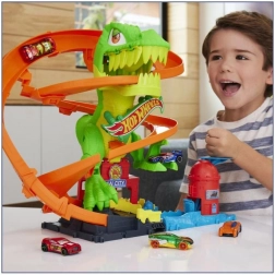 Mėgaukitės veiksmo kupinu žaidimu su Hot Wheels City rinkiniu, kuriame prie gaisrinės stoties stosite priešais išalkusį T‑reksą. Vaikai paleidžia 1:64 mastelio metalinę mašinėlę ir gali pasiekti tris skirtingus rezultatus – nugalėti dinozaurą, „pasipildyti degalų“ stotyje arba būti „prarytam“ ir vėl išleidžiamam. Besisukančios T‑rekso akys, dinamiški elementai ir vietos talpykla kitoms mašinėlėms skatina vaizduotę ir atkaklumą.