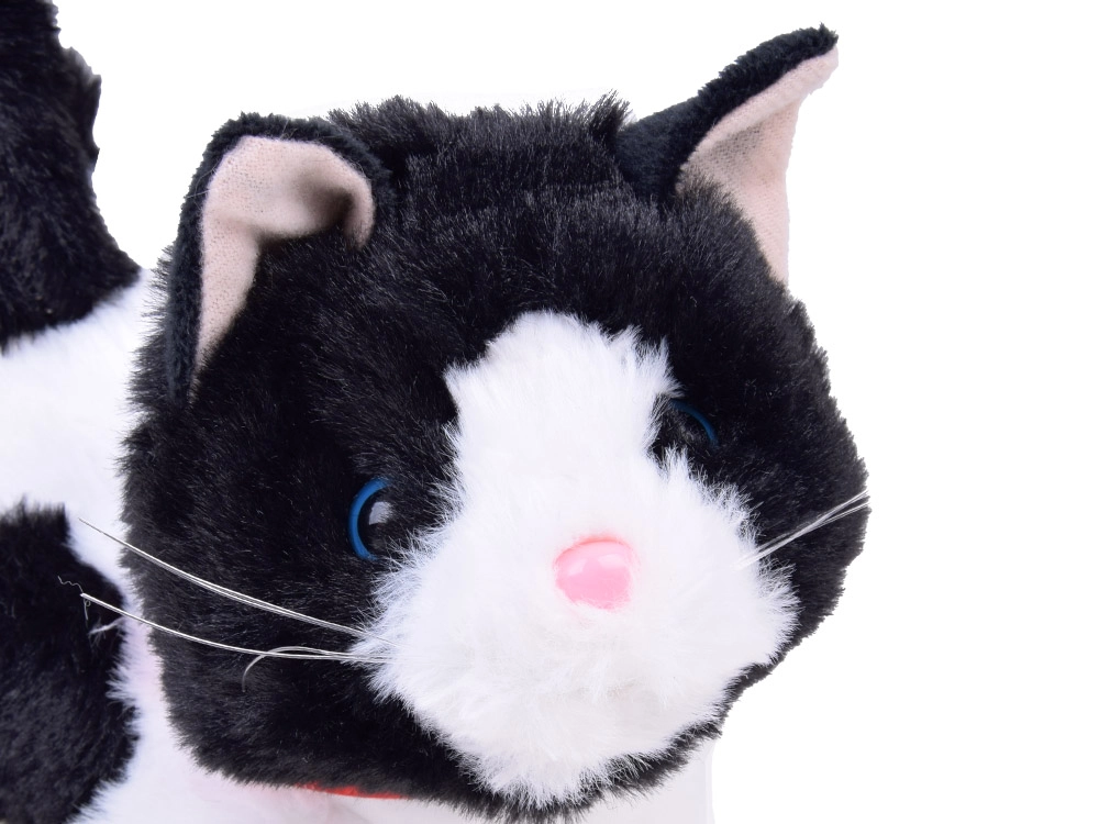 Pristatome interaktyvią pliušinę katę juodai baltos spalvos su raudonu antkakliu. Šis žavus pliušinis draugas taps neatsiejama kiekvieno vaiko, svajojančio apie savo augintinį, dalimi. Dėl savo funkcijų ji suteikia valandų valandas pramogų, lavina vaikų vaizduotę ir empatiją.