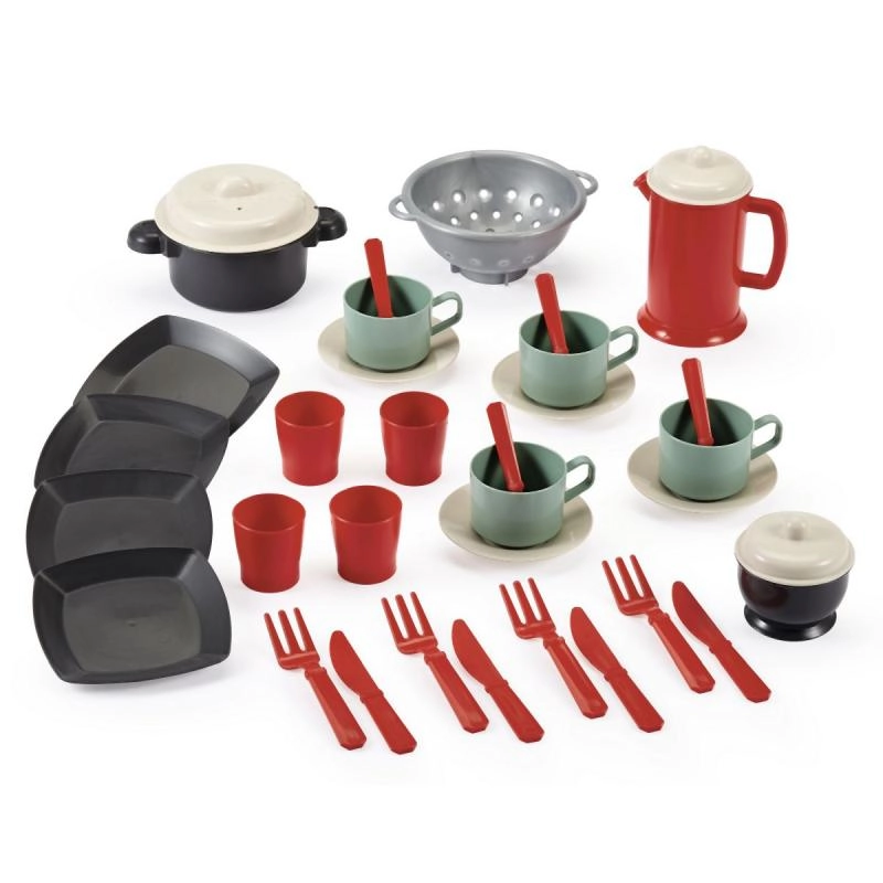 Šis rinkinys idealus mažiesiems šeimininkams ir šeimininkėms, kurie mėgsta rengti arbatos popietes ar pietus savo draugams ir lėlėms. Lengvai nešiojamas dėl permatomo krepšio su užtrauktuku, kuriame yra viskas, ko reikia serviravimui.