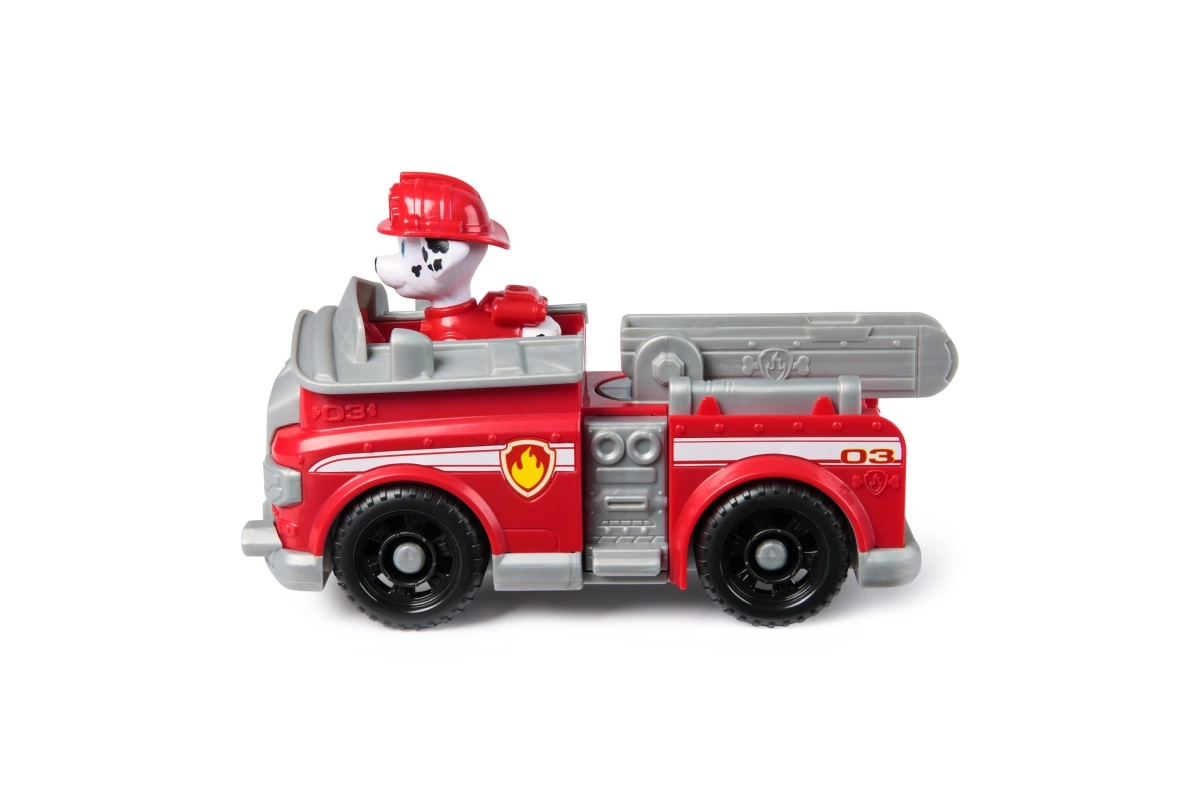 Marshallo raudona gaisrinė su mielu dalmatinu įguloje – idealus pasirinkimas mažiesiems gelbėjimo misijų gerbėjams. Vaikai gali lengvai pasodinti figūrėlę į kabiną ir skubėti į pagalbą su sklandžiai besisukančiais ratais bei ištraukiama kopėčia. Autentiški elementai iš serialo skatina kūrybinius nuotykius Adventure Bay mieste.
