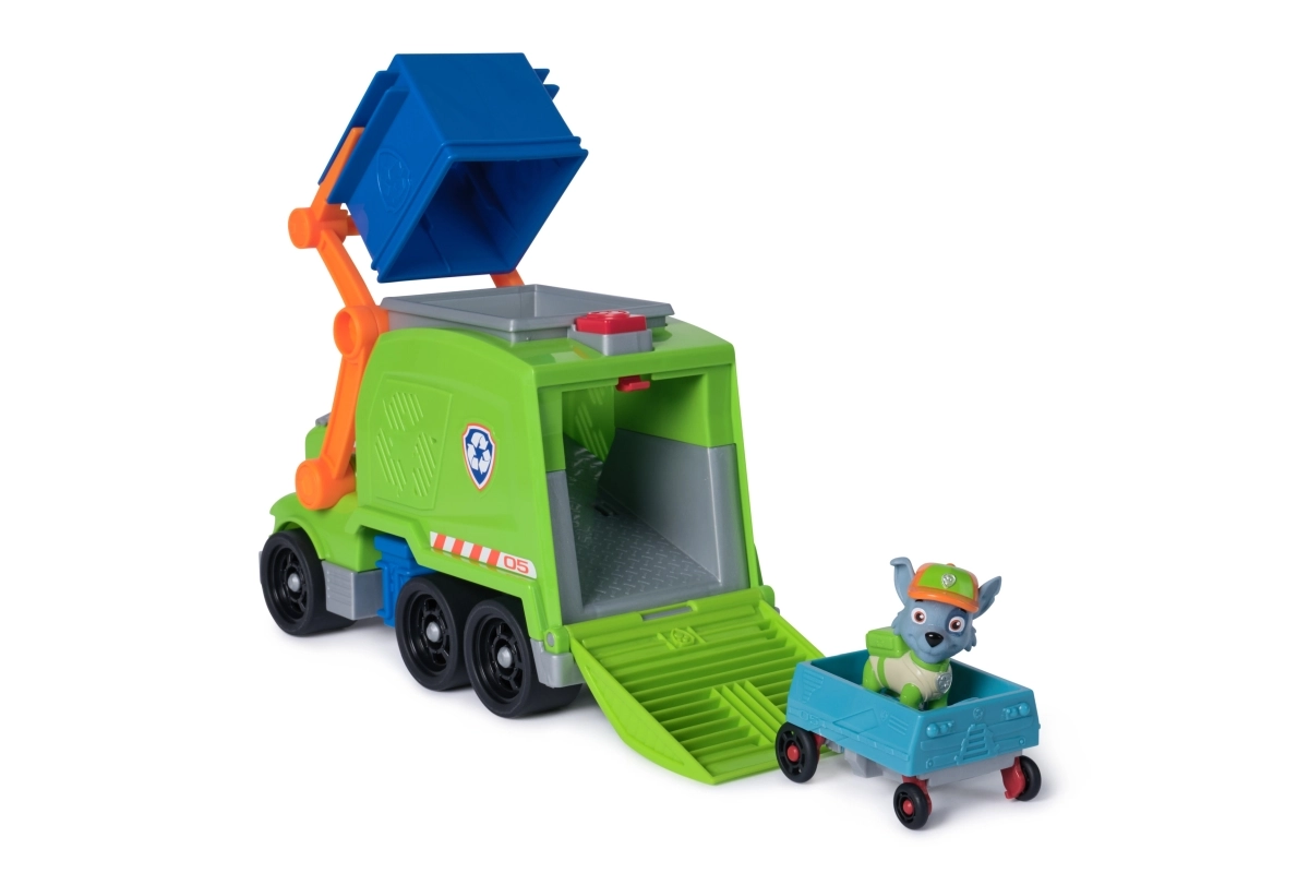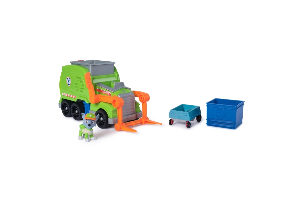 Šis žalias šiukšlių surinkimo sunkvežimis su Rocky suteikia puikių perdirbimo nuotykių. Vaikai gali pasodinti figūrėlę į vairuotojo sėdynę, priekinių šakių pagalba pačiupti mėlyną konteinerį ir svirtimi jį pakelti pakrovimui. Paspaudus mygtuką, nusileidžia galinė rampa, o sugniuždyta transporto priemonė virsta mini automobiliuku, kuriuo Rocky gali važiuoti.