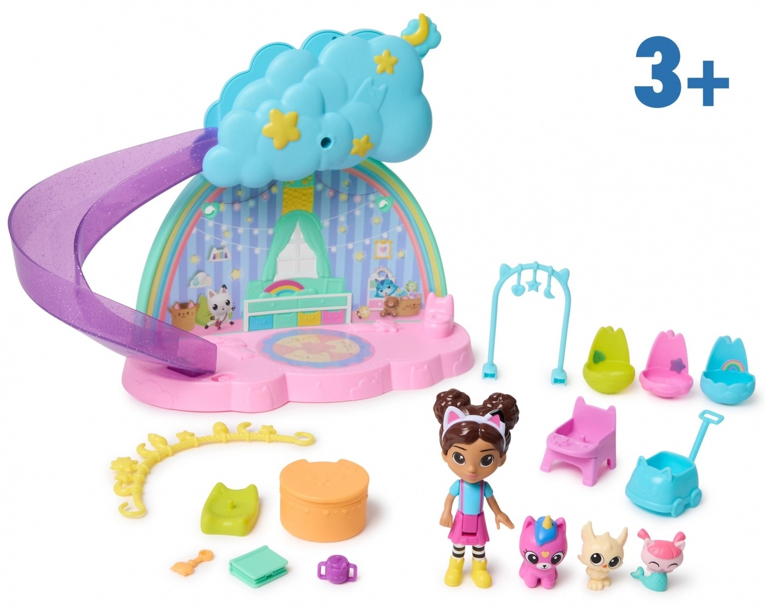 Po nuotykių kupinos dienos paguldykite kačiukus į lopšį ir švelniai juos užsupkite miegui. „Kačiuko namelis Gabka“ serijos produktai – idealios dovanos vaikams, mėgstantiems kurti savo nuotykių pasaulį. Suteikite jiems nepamirštamų žaidimo akimirkų su veiksmo figūrėlėmis, priedais ir namelių baldais.