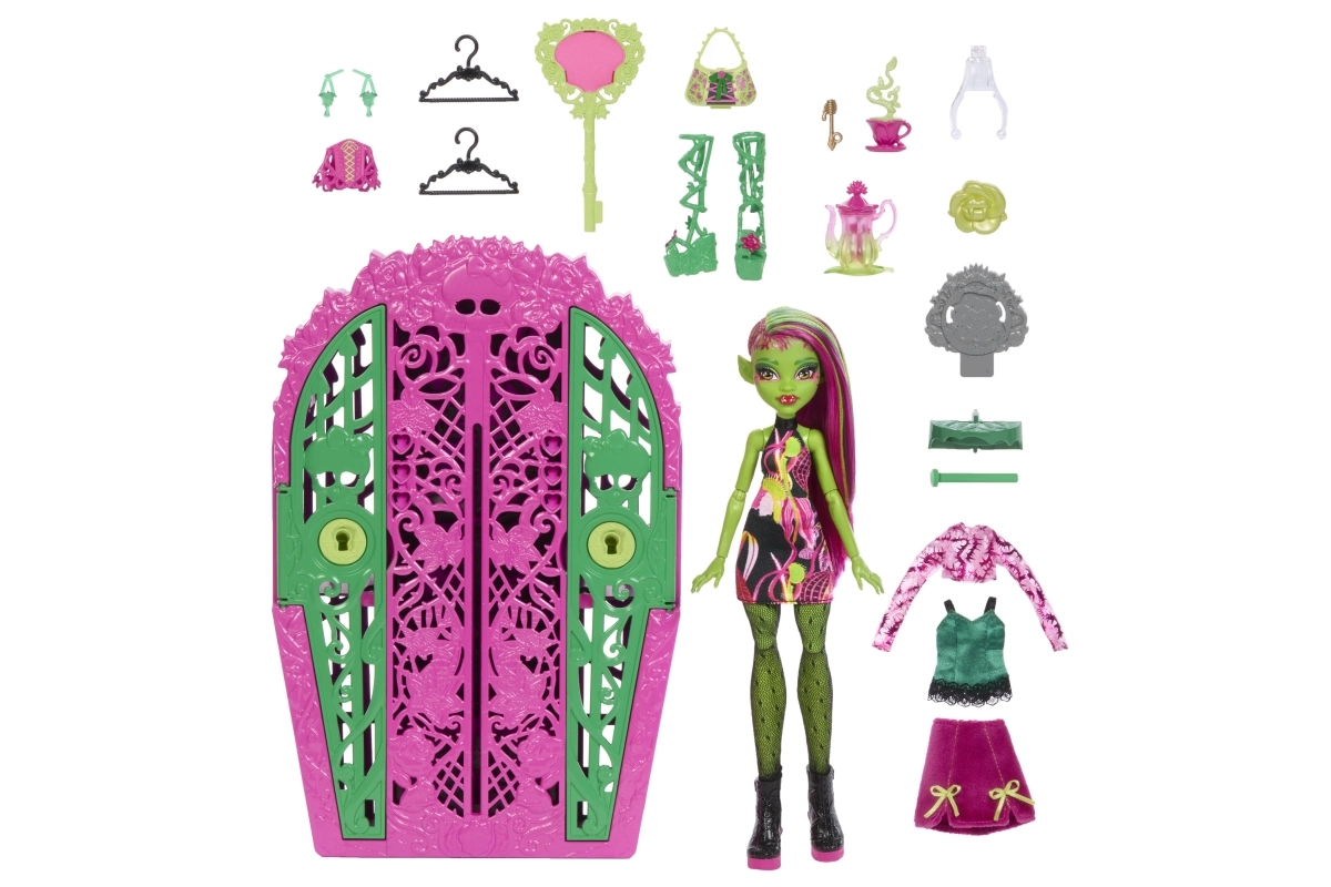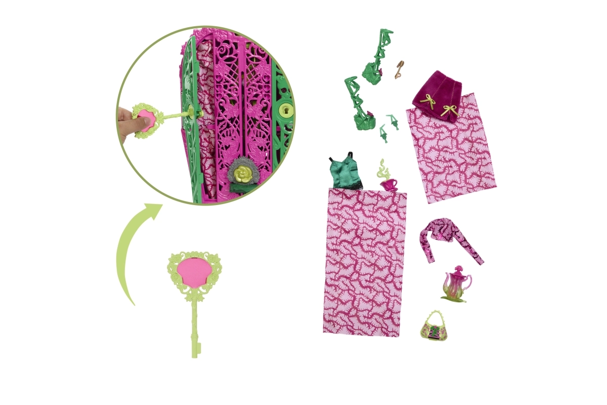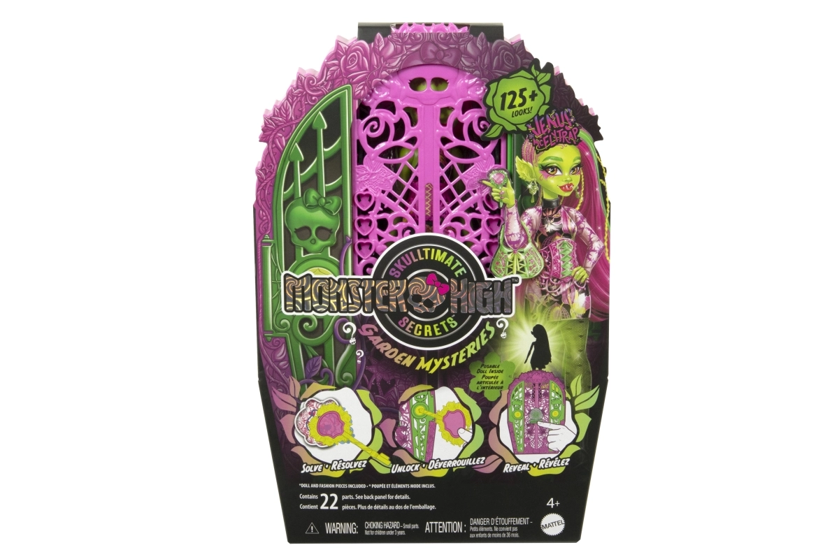 Ženkite į tamsiai žavingą MONSTER HIGH pasaulį ir atraskite Ultimate Secrets – Sodo paslaptys rinkinį su lėle Venus McFlytrap. Žaiskite detektyvus: naudodami „magišką“ raktą su lupa ieškokite simbolių žemėlapyje ir po žingsnį atrakinkite paslėptas paslaptis. Kiekvienas atradimas atneša naujų drabužėlių ir aksesuarų šiurpokai elegantiškai sodo puotai.