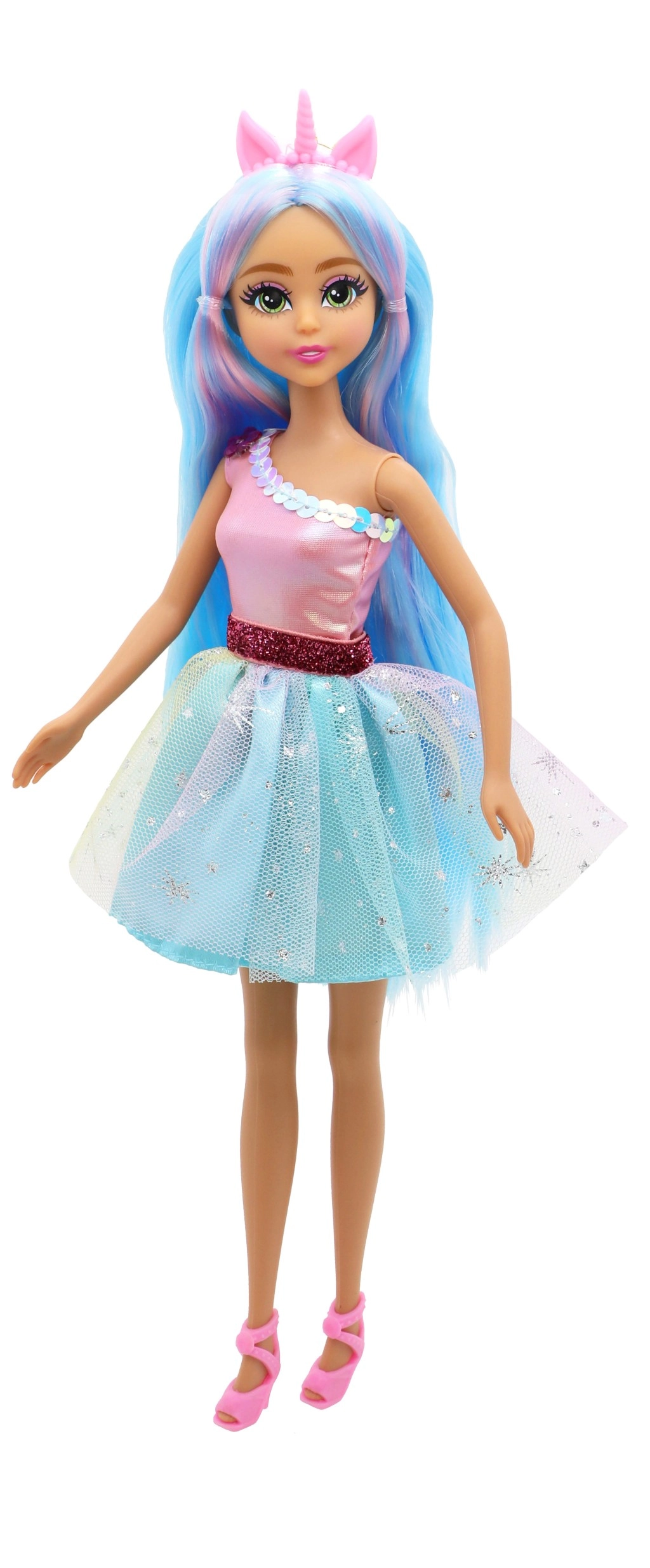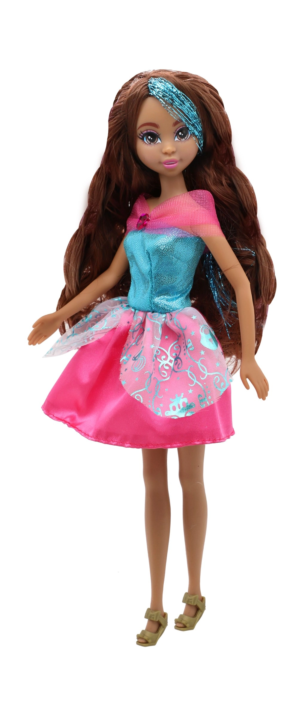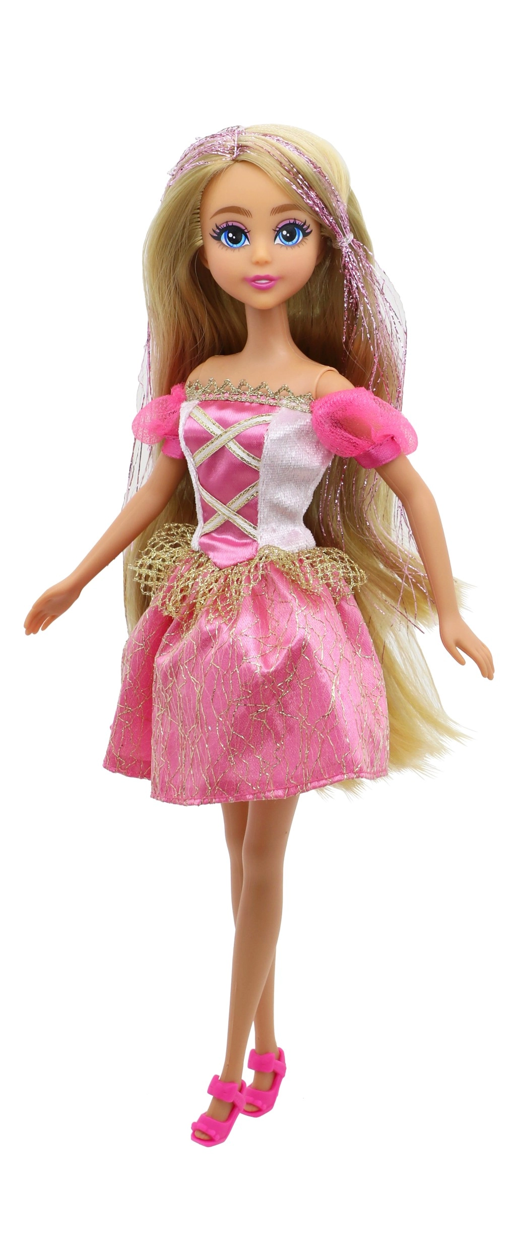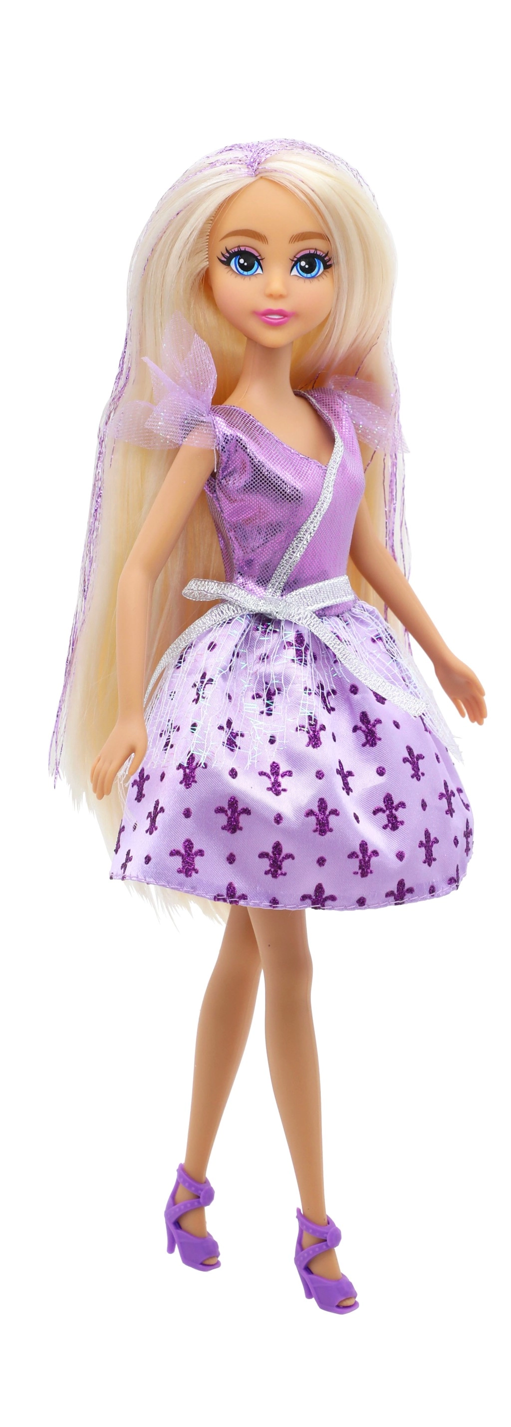 Blizgi suknelė, subtilios detalės ir derantys bateliai paverčia lėlę tikra princese, kuri nušvies kiekvieną vaikų kambarį.