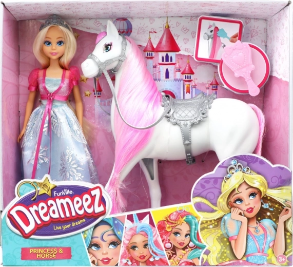 Atraskite užburiantį rinkinį princesė su arkliuku iš DREAMEEZ – maždaug 29 cm aukščio lėlė su nuostabia suknele, karūna ir mielu arkliuku su karčiais. Idealu pasakų žaidimams, vaizduotės ugdymui ir smulkiajai motorikai šukuojant bei prižiūrint karčius.