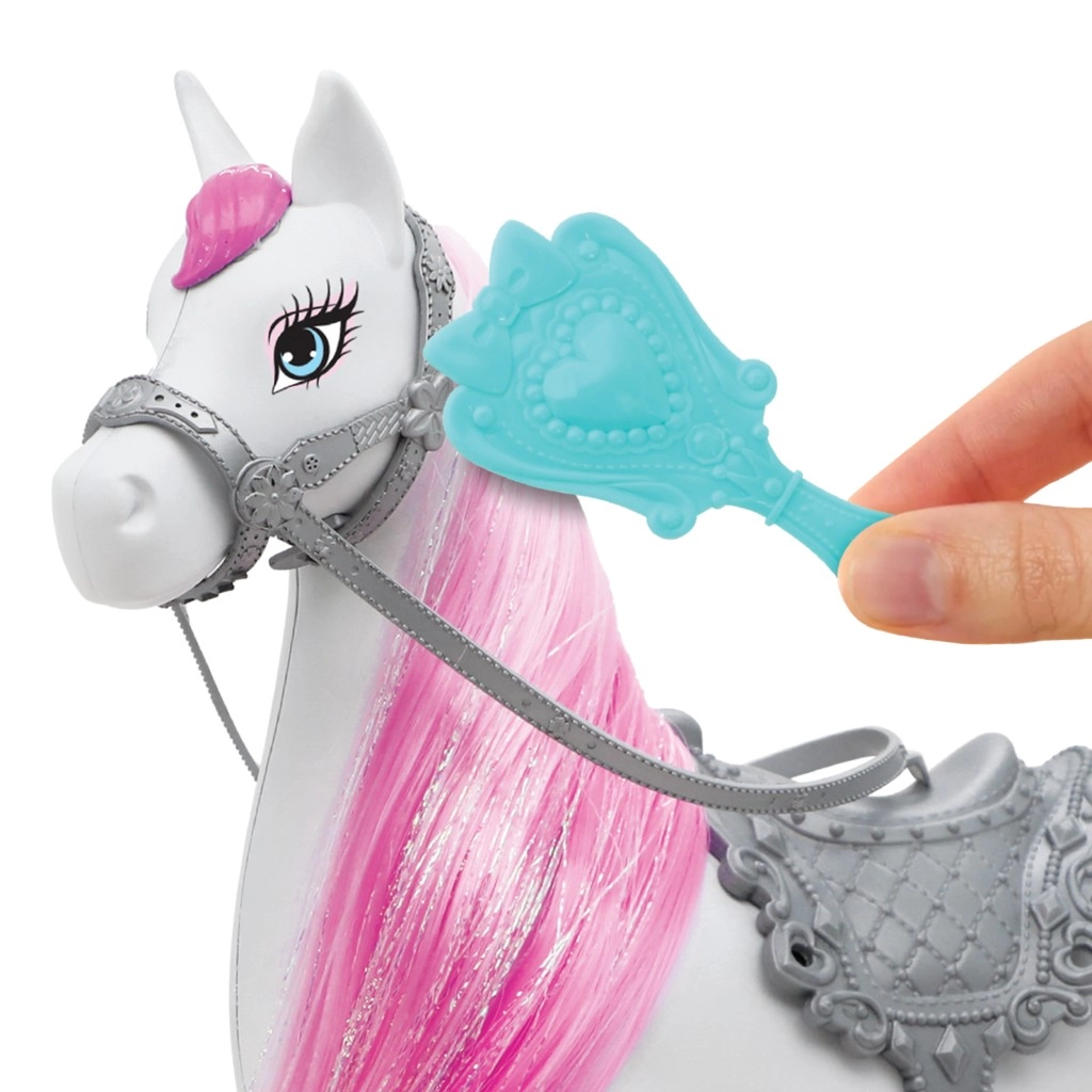 Šis žavus rinkinys sujungia gražią princesę elegantiška suknele ir jos ištikimą arkliuką su ilgais rožiniais karčiais. Vaikai gali kurti savo pasakojimus, keliauti į fantazijos karalystę ir lavinti kūrybiškumą bei socialinius įgūdžius vaidmenų žaidimuose.