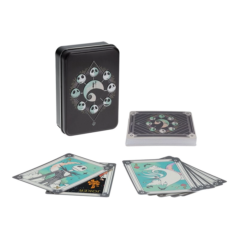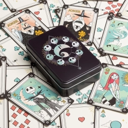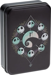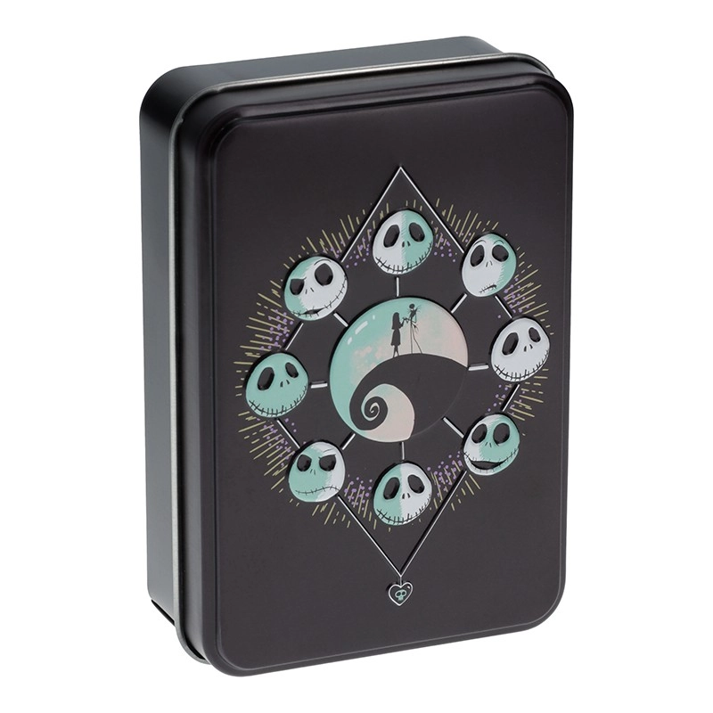 Juoda metalinė dėžutė su Jacko Skellingtono ir Sally motyvais idealiai tinka laikymui ir saugo jūsų kortas.