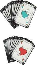 Kortų rinkinys su minimalistiniu dizainu ir dekoratyvinėmis detalėmis, kurios patrauks kiekvieno žaidėjo dėmesį.