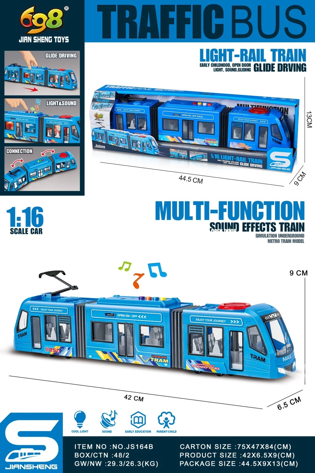 Atraskite realistišką miesto transporto modelį: mėlynas tramvajus masteliu 1:16 pradžiugins ir mažus, ir vyresnius gerbėjus. Dėl kompaktiškų matmenų jis idealiai tinka žaisti namuose – ant grindų, stalo ar vaikų žaidimų zonoje. Skatina vaizduotę, kūrybišką žaidimą ir siūlo patrauklų mėlyną dizainą kasdienei pramogai.