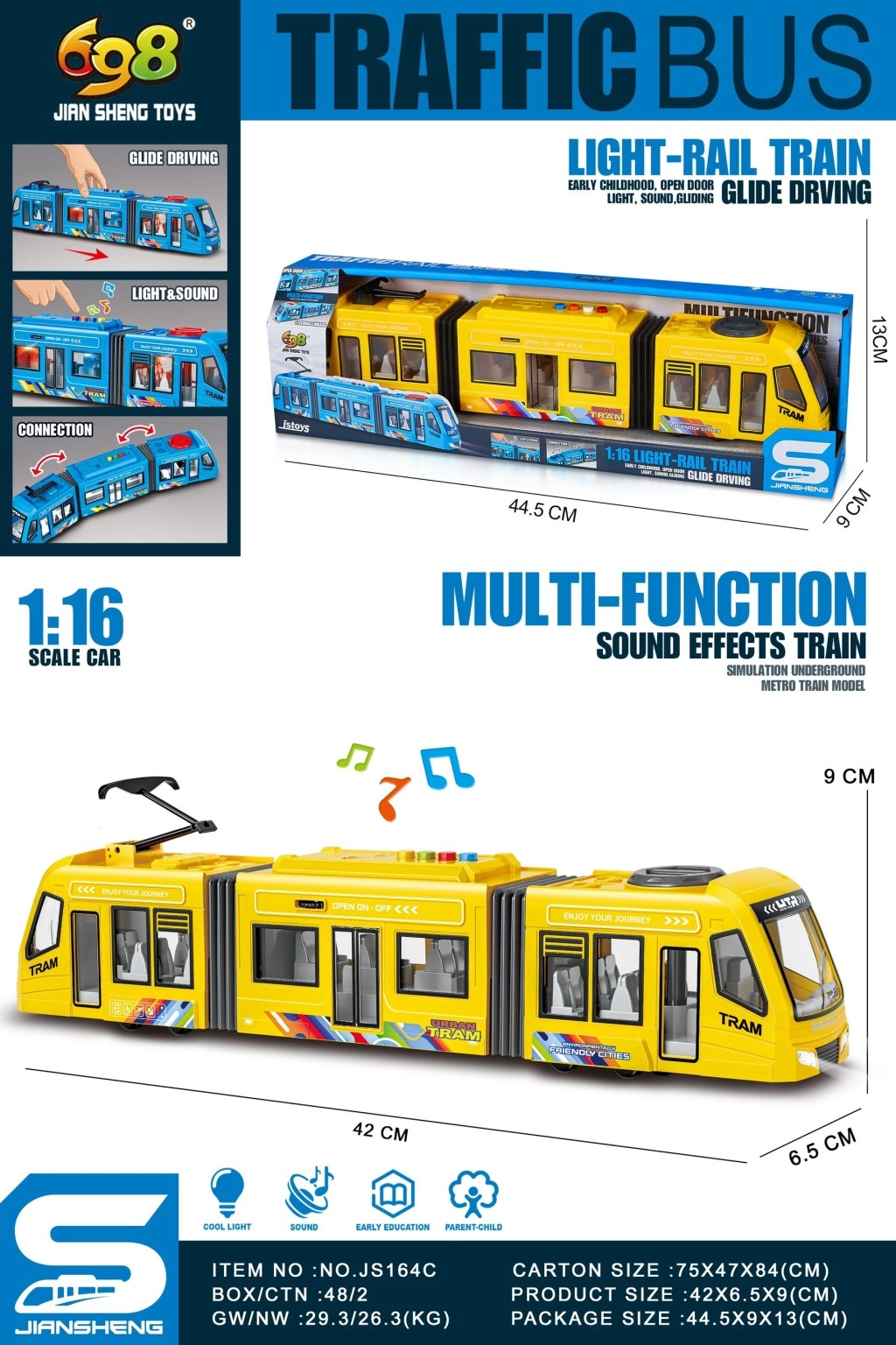 Leiskis į miesto kelionę su gražiu tramvajaus modeliu, kuris išsiskiria proporcijomis ir ryškia geltona spalva. Dėl 1:16 mastelio jis idealiai tinka žaisti ant grindų, stalo ar vaikų žaidimų zonoje.