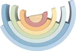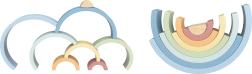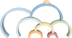 Rinkinyje yra 8 pusapvalės detalės skirtingų dydžių ir švelnių spalvų, kurias galima dėlioti į vaivorykštę, tiltus, tunelius ir fantazines konstrukcijas.