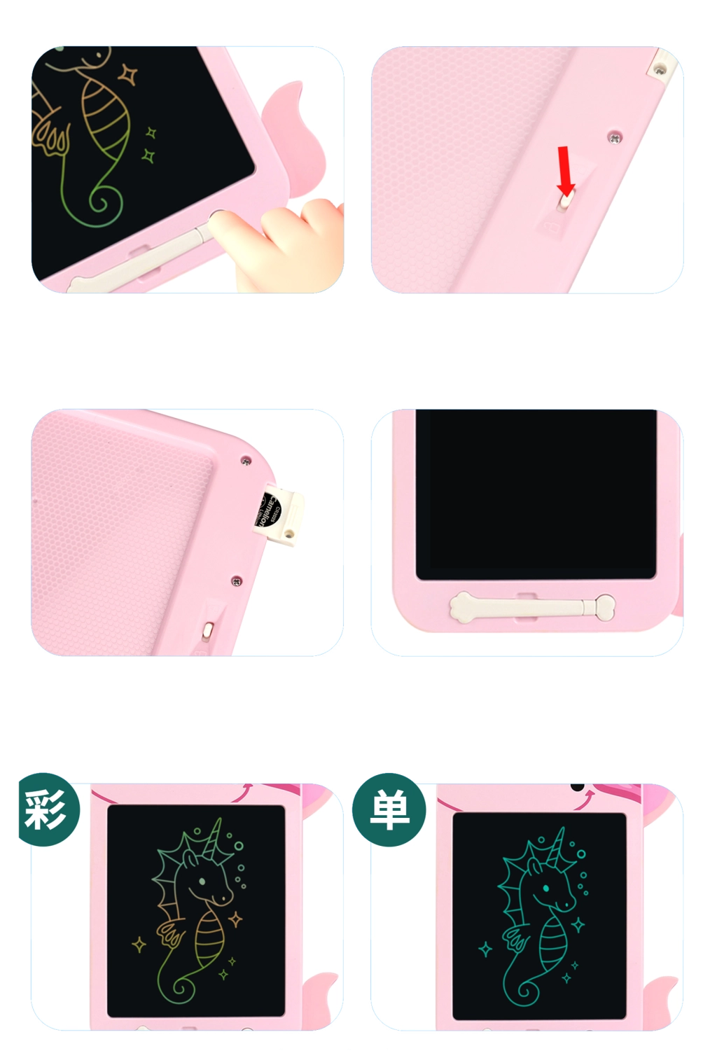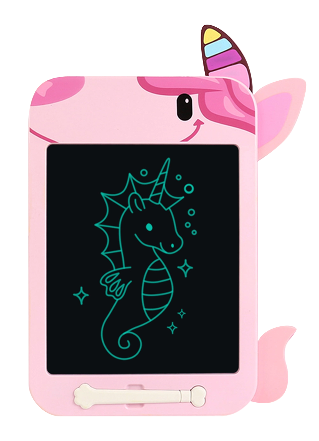 Leisk savo kūrybiškumui laisvai tekėti su šia magiška LCD lentele linksmos vienaragės formos! Piešk, rašyk ir kurk be apribojimų – vienu mygtuku viską ištrinsi ir galėsi pradėti iš naujo.