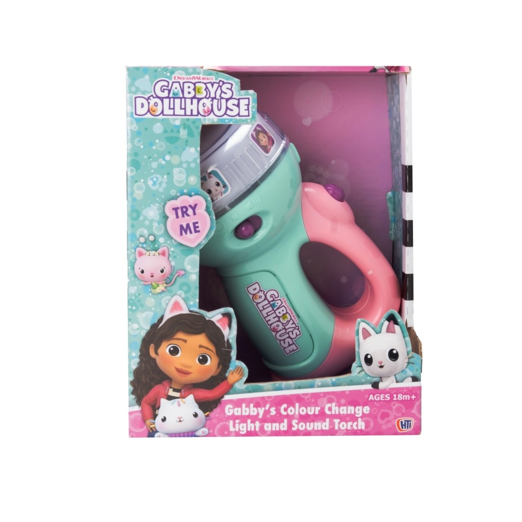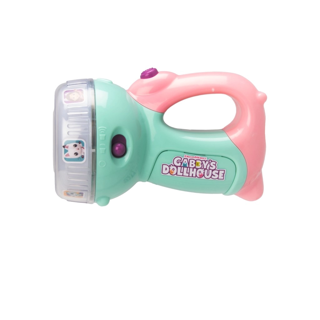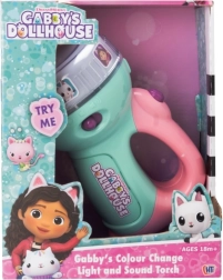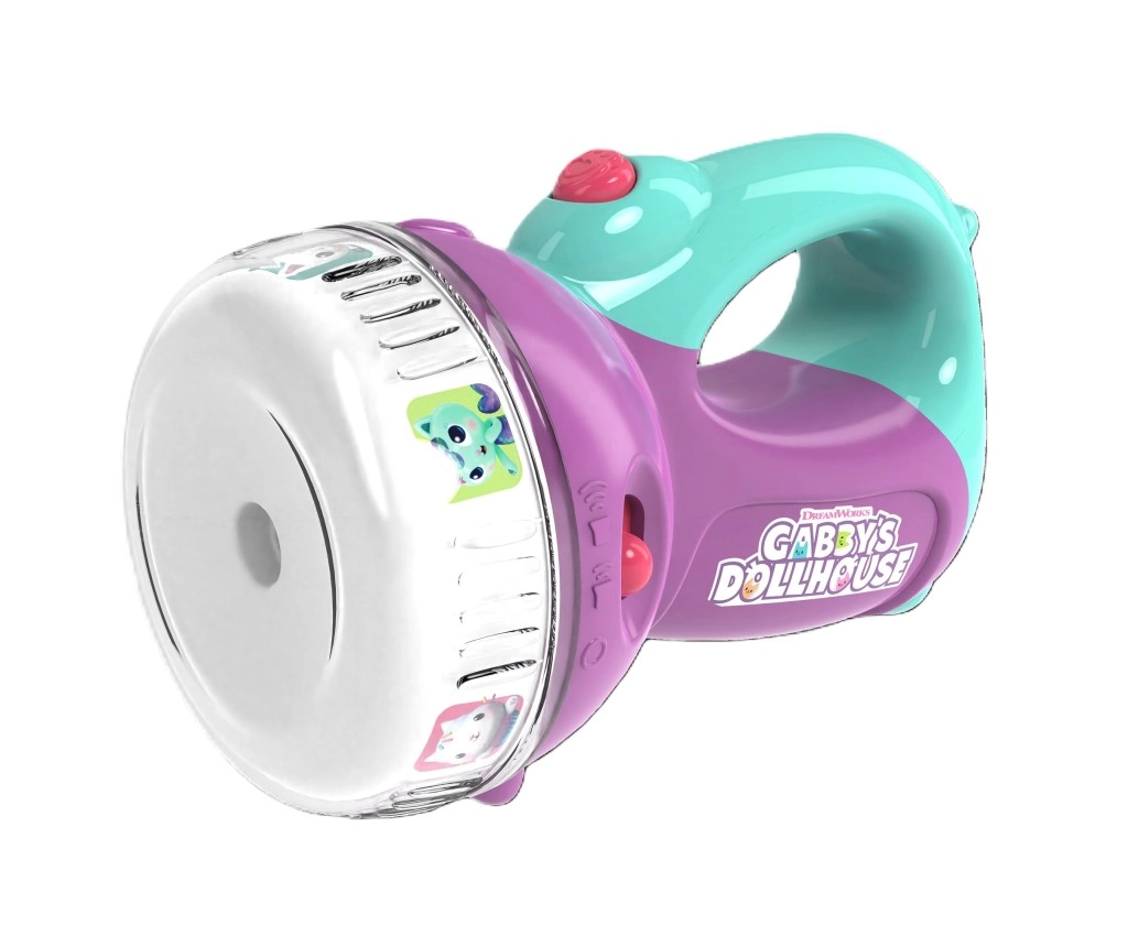 Interaktyvus Gabby stebuklingo namelio žibintuvėlis – puikus žaislas, derinantis linksmus šviesos ir garsų efektus. Naudojant ratuką vaikas lengvai perjungia šešias ryškias spalvas. Tuo pačiu gali klausytis mėgstamų garsų iš laidos ir mėgautis žaidimu tamsoje ar stovyklaujant. Žibintuvėlis sukurtas taip, kad būtų patogus net mažoms rankytėms, jo matmenys – 15 cm x 10 cm. Veikia su 3 x AAA baterijomis, kurios yra pakuotėje. Puikus pasirinkimas vaikams nuo 12 mėnesių.