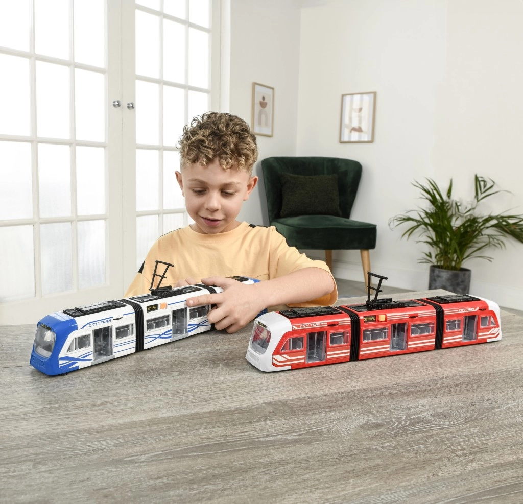 Tramvajus prieinamas dviejose spalvinėse versijose – raudonoje ir mėlynoje. Dėka pridėtų 3× AAA baterijų žaislas iš karto paruoštas naudojimui, todėl garantuoja valandas pramogų jūsų vaikui. Tinka vaikams nuo 3 metų.