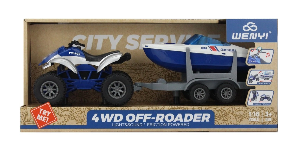 Mėgaukitės įvairiapusiu žaidimu dėl nuimamo priekabėlio, kuris praplečia žaidimo galimybes. Be to, šis keturatis sugeba atlikti kaskadinius triukus, pavyzdžiui, stovėti ant priekinių ratų, taip suteikdamas dar daugiau adrenalino kiekvienam žaidimui.