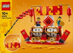 Skatinkite 10+ metų vaikų kūrybiškumą su LEGO švenčių kalendoriumi (40678), kuris leidžia pastatyti du unikalius modelius. Dėl pasukamos konstrukcijos vaikai gali lengvai pasirinkti, kuri data bus rodoma. Kinų Naujųjų metų modelyje yra dvi minifigūrėlės ir žibintai, o Drakono valčių festivalo modelyje yra nuostabaus drakono galva ir uodega bei vandens imitacijos elementai. Be to, yra fejerverkų, raudonų vokų ir laimės simbolis.