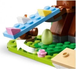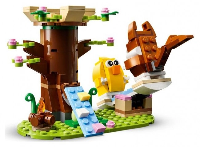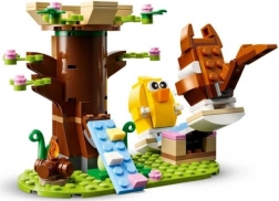 LEGO Pavasarinė gyvūnėlių žaidimų aikštelė – puiki dovana vaikams nuo aštuonerių metų ir vyresniems. Šiame rinkinyje yra bitė, paukšteliai, namelis medyje, laužavietė, supynės ir du velykiniai kiaušiniai. Vaikai gali leisti gyvūnėliams lipti rampa į namelį medyje, sėdėti prie laužo arba suptis ant sūpynių.