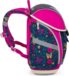 Lengvas 3 dalių mokyklinis rinkinys su drugelio motyvu apima erdvią kuprinę, maišelį ir penalą. Kuprinė sveria tik 970 g, turi ergonomišką paminkštinimą, plačias reguliuojamas petnešas su krūtų dirželiu, atsvaitus ir magnetinį užsegimą. Siūlo 26 l talpą, praktišką skyriklių sistemą ir daugybę kišenių – ideali pasirinktis jauniausiems mokinukams nuo 121 cm ūgio.